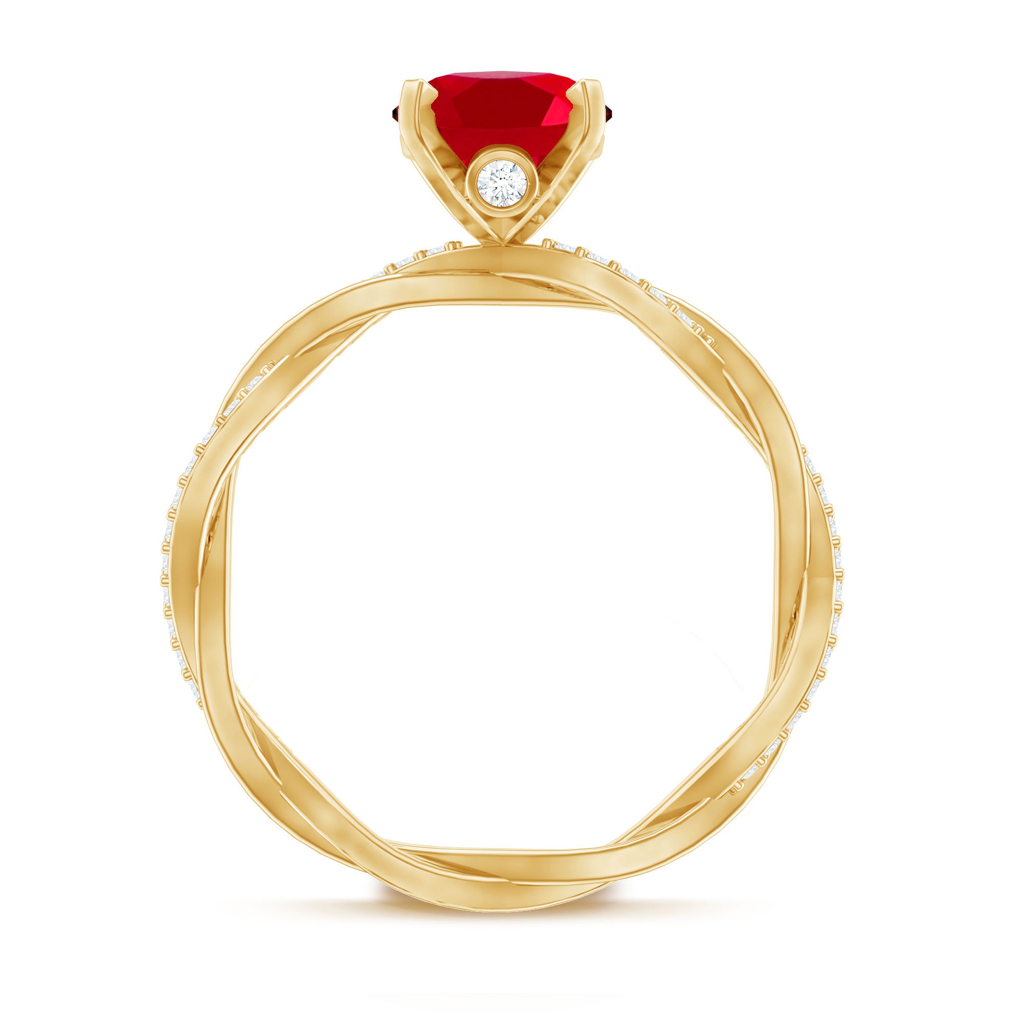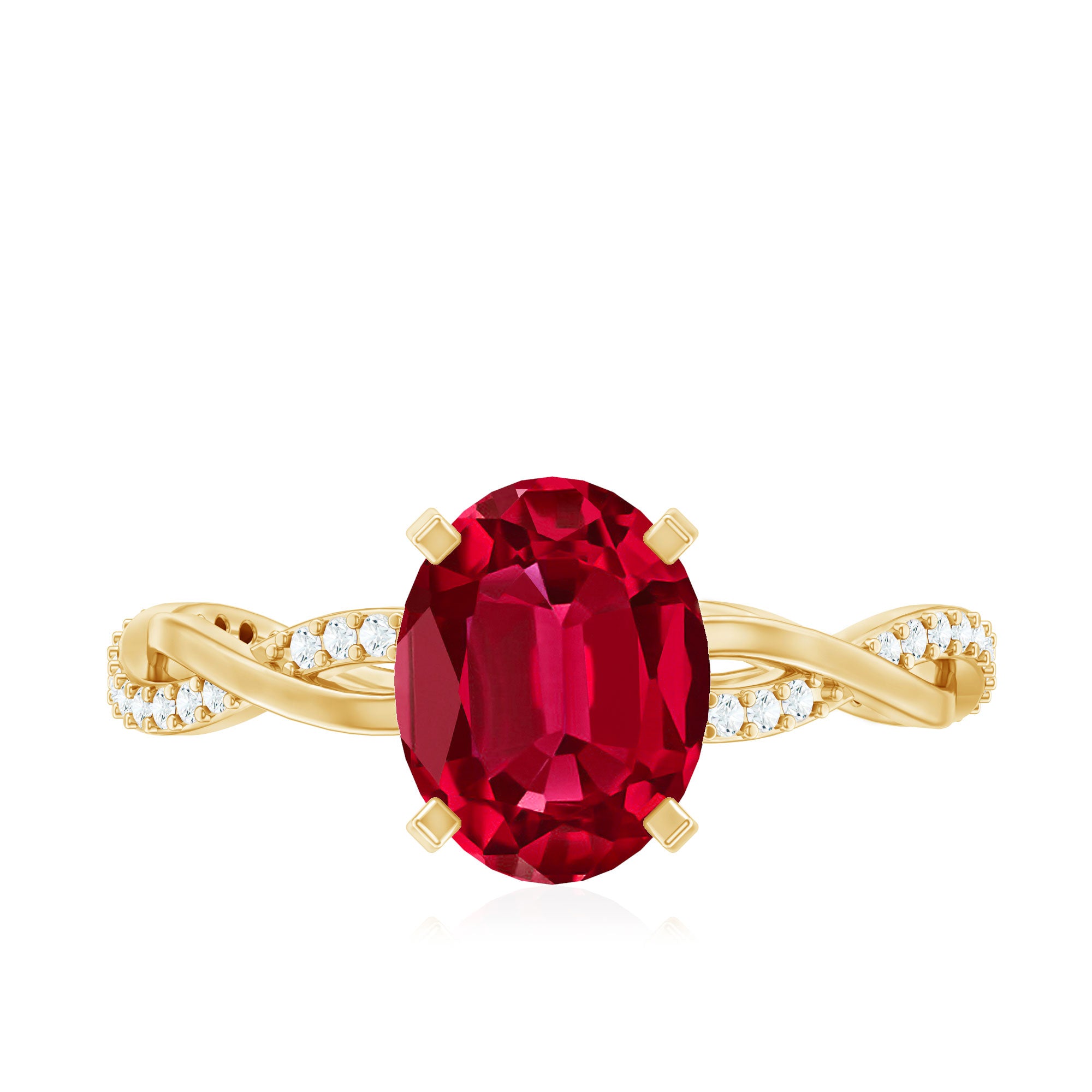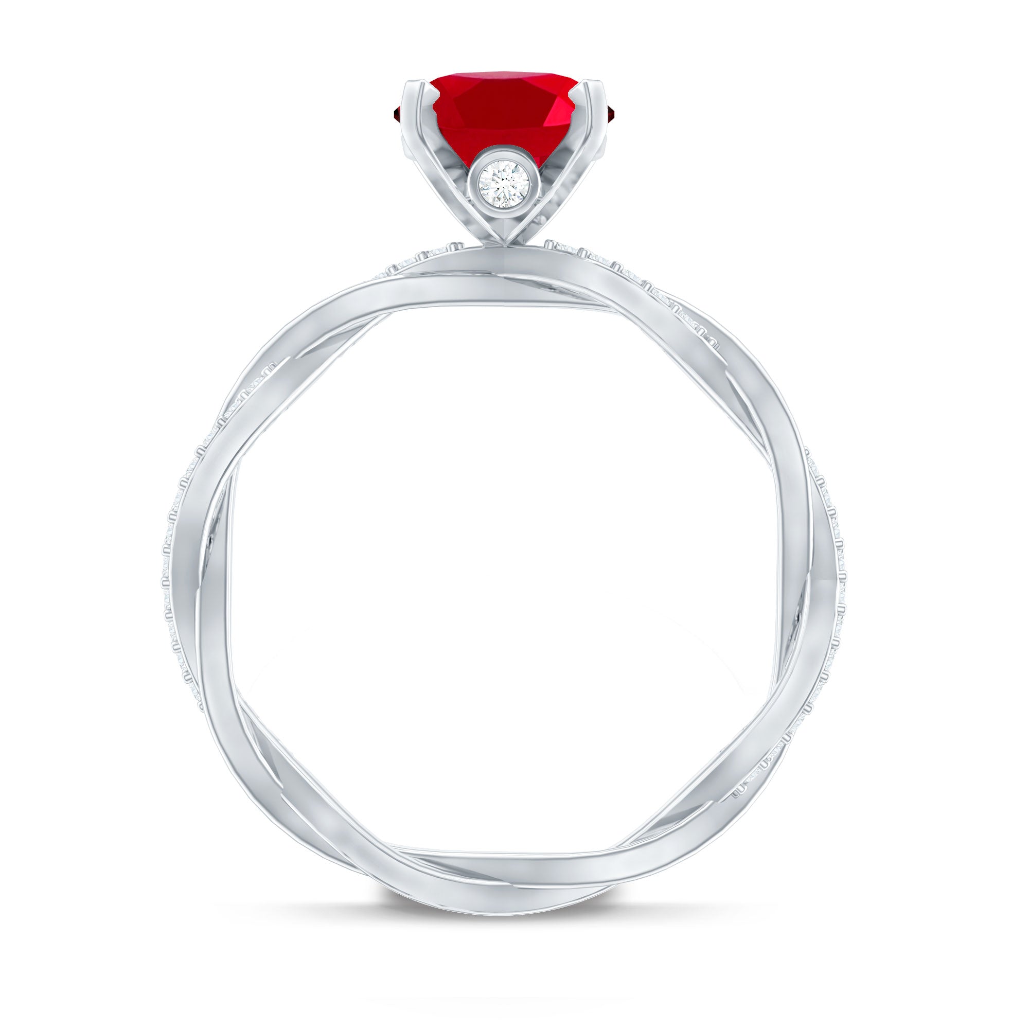 Oval Shaped Lab Ruby and Diamond Braided Engagement Ring