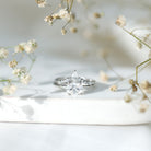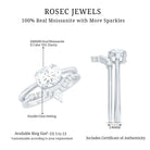 Breathtaking and effortless Bridal Ring Set features a solitaire engagement ring adorned with 6X8 MM oval shaped moissanite set in secure double claw setting in east west style. To enhance the look of Low Profile Engagement Ring, a Notched Wedding Band is there designed with pear and round cut stones. Embrace her bridal ensemble with the sparkling allure of this Oval Wedding Ring Set embellished with D-VS1 Quality Moissanites which exude a radiant and brilliant sparkle. Celebrate your big day with Moissanite Ring Set with Band Curved, a true treasure piece for generations to come.