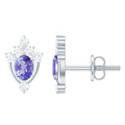 Oval Shaped Tanzanite and Diamond Stud Earrings with Screw on Back