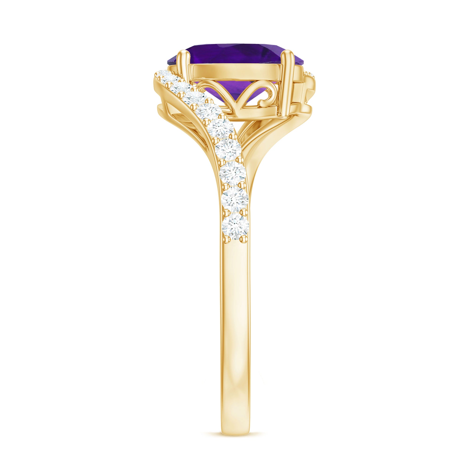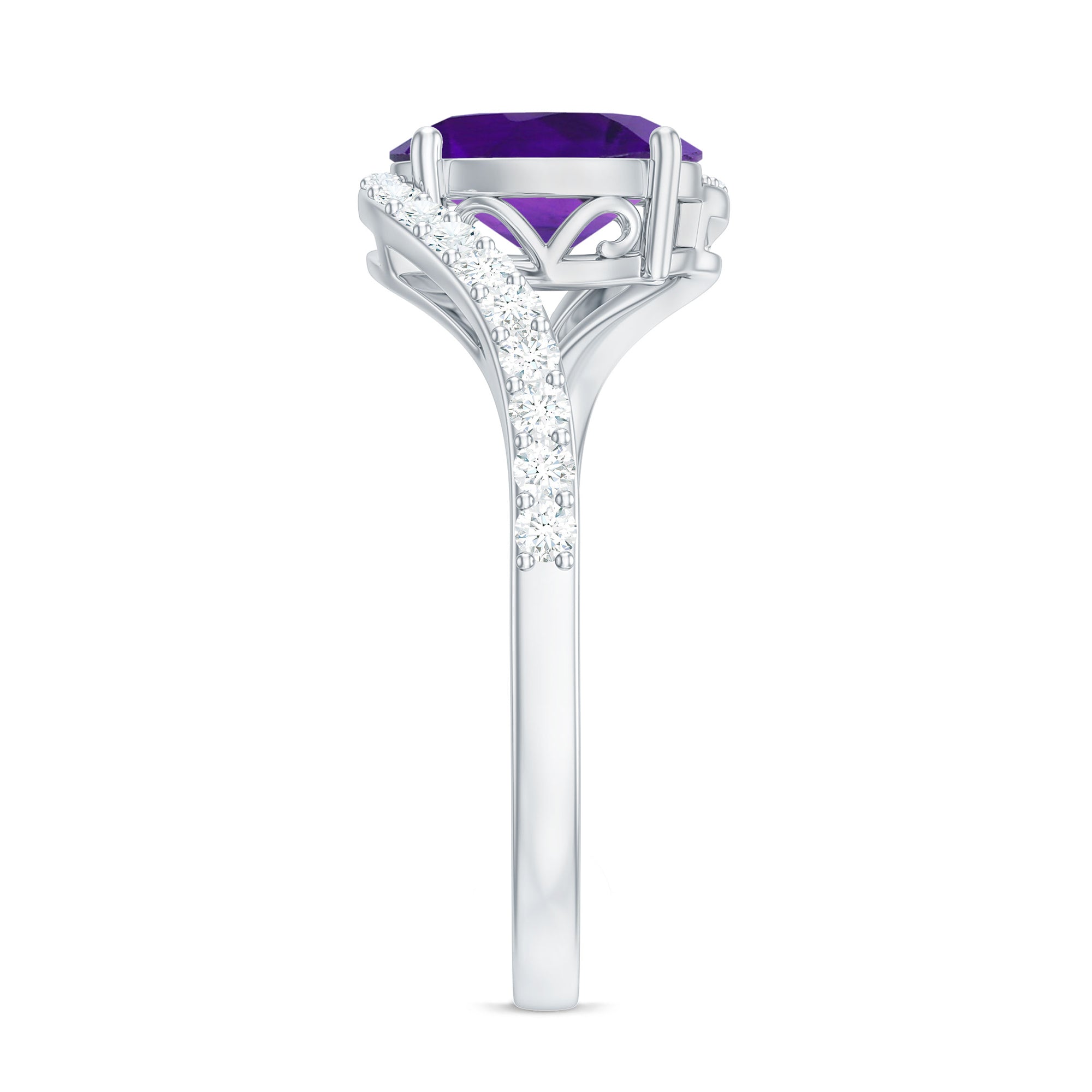 Oval Solitaire Amethyst Engagement Ring with Diamond
