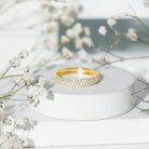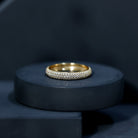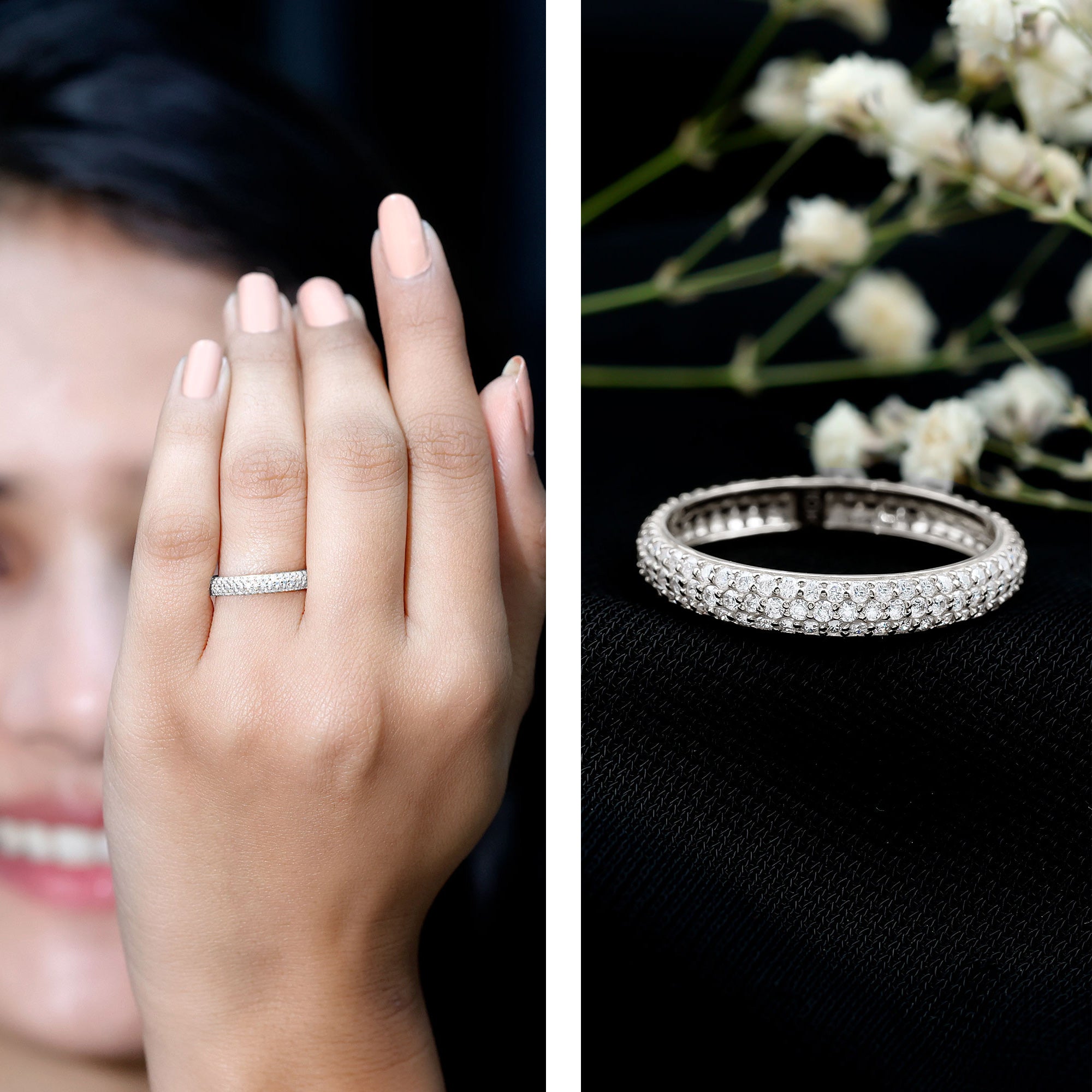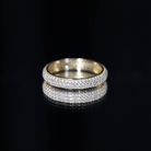 Adorning the gleaming metal band are glistening round-shaped zircon stones, meticulously micro-pave set in a complete eternity style, emanating an air of sheer sophistication. Crafted to make a lasting impression, this wedding band featuring zircon is available in a variety of metal options, catering to diverse preferences.