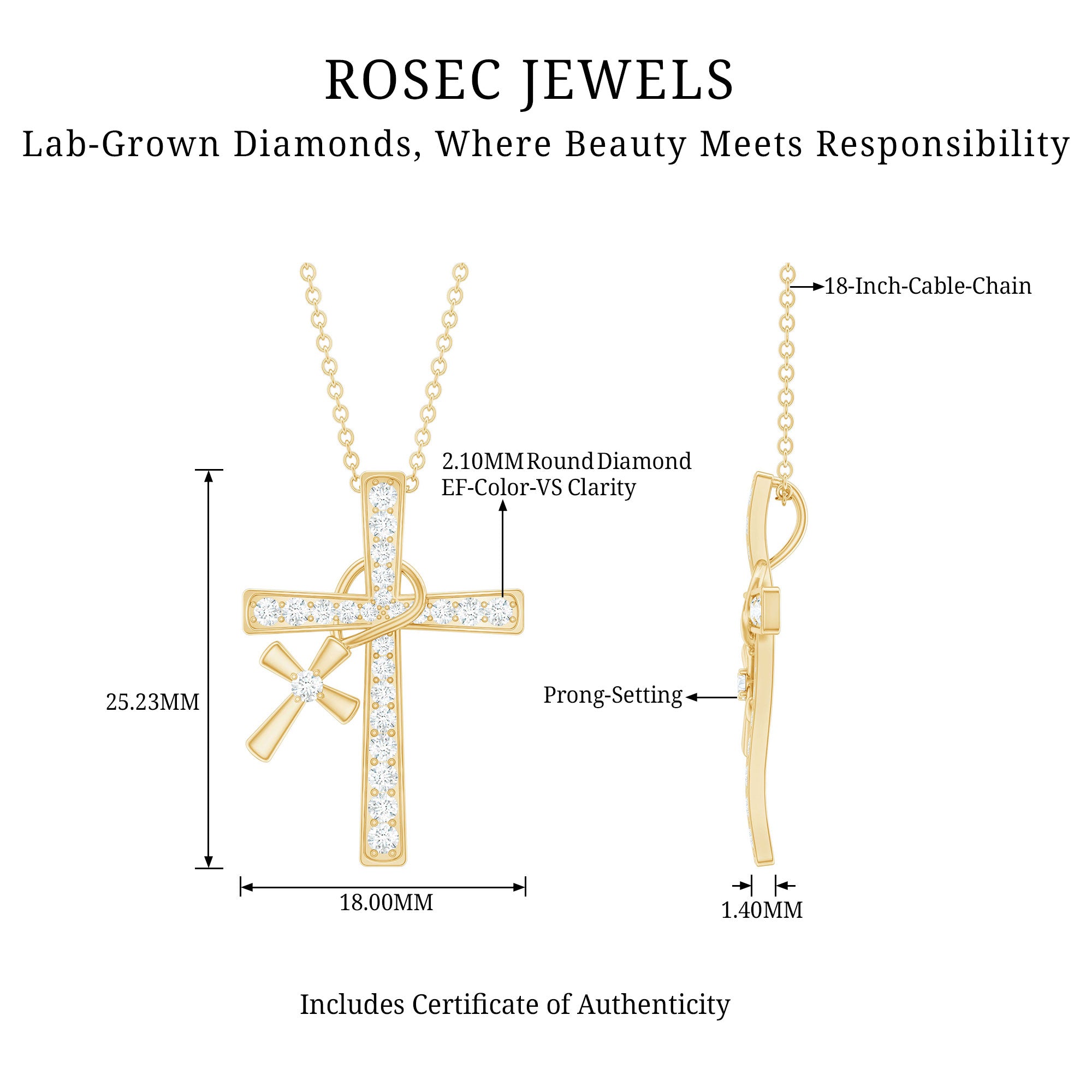 Pave Set Lab Grown Diamond Double Cross Charm Necklace