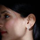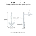 These Moissanite Drop Earrings are perfect to complete your looks for the special day, crafted with 14K White Gold Plated Silver. The earring features a butterfly charm that is embedded with a Smaller Moissanite secured in Pave Setting. These Butterfly Earrings hold the classic shine of D-VS1 Quality, which goes well with the girl-next-door image. These Earrings has Screw on Backs that stays on place throughout the day. The earrings will be delivered to you in a velvet pouch with a certificate of authenticity.