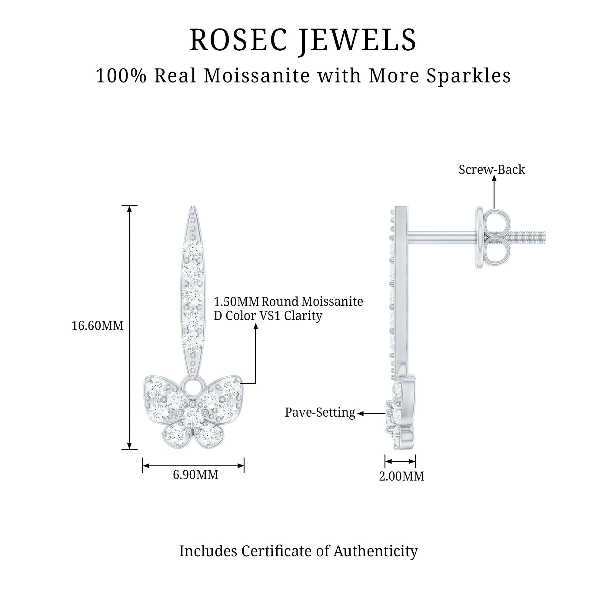Pave Set Moissanite Butterfly Drop Earrings for Women
