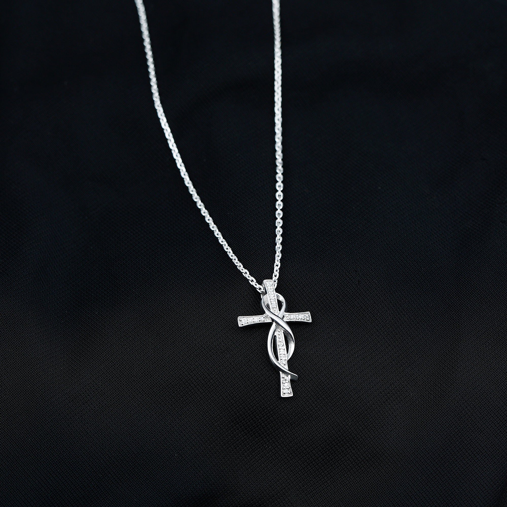 Pave Set Moissanite Cross Infinity Necklace with Silver Chain