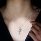 This one-of-a-kind Moissanite Cross Necklace represents your faith endlessly, because true devotion lasts forever. This gorgeous Cross and Infinity Necklace is a blend of elegance and significance, suitable for men and women both. It is made from 14k white gold plated silver and features a beautifully designed cross embellished with sparkling moissanite stones, with an infinity symbol that elegantly intertwines with the cross, representing eternal faith, love, and strength. The hidden bail gives it a seamless, floating look, and the Moissanite Pendant Necklace hangs from an adjustable chain with a secure lobster clasp, ensuring a comfy fit for anyone. Packed in a premium velvet pouch, its the ideal gift for a moment you will treasure forever.