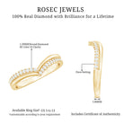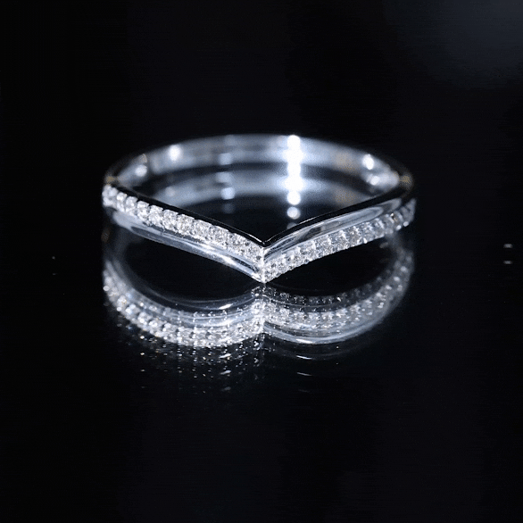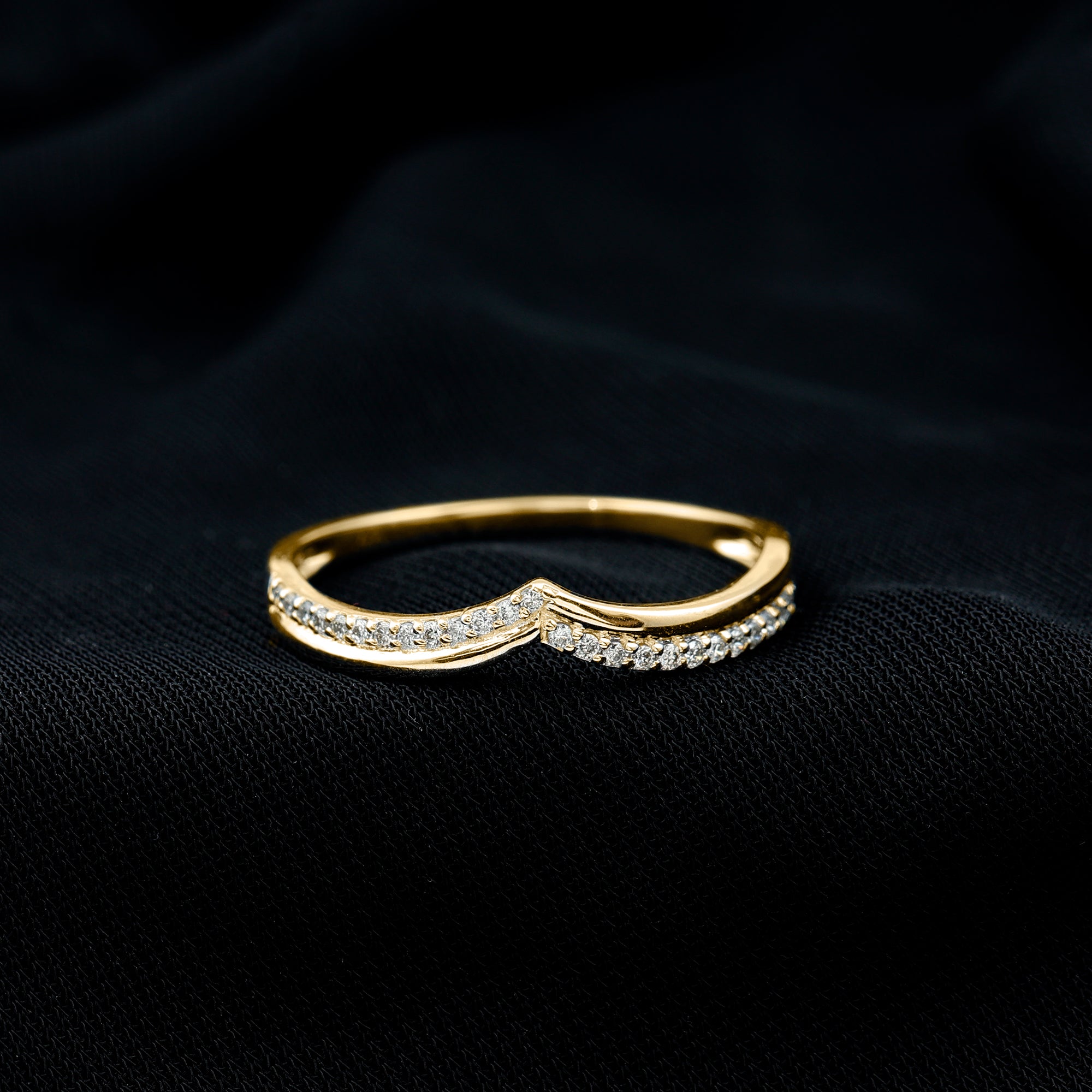 Make her surprise with this Diamond Ring Guard, to beautify her fingers. The ring features Round Shape Diamonds decorated on the band in Pave Setting. This Chevron Ring can be styled in both ways either solely to achieve a minimal look or with the engagement ring to achieve a statement look. This Engagement Ring Enhancer adds a touch of elegance and glamour which elevates the style quotient. This Nesting Band Ring is precisely crafted for your special one. Get her this ring and witness a priceless moment that will be cherished forever.