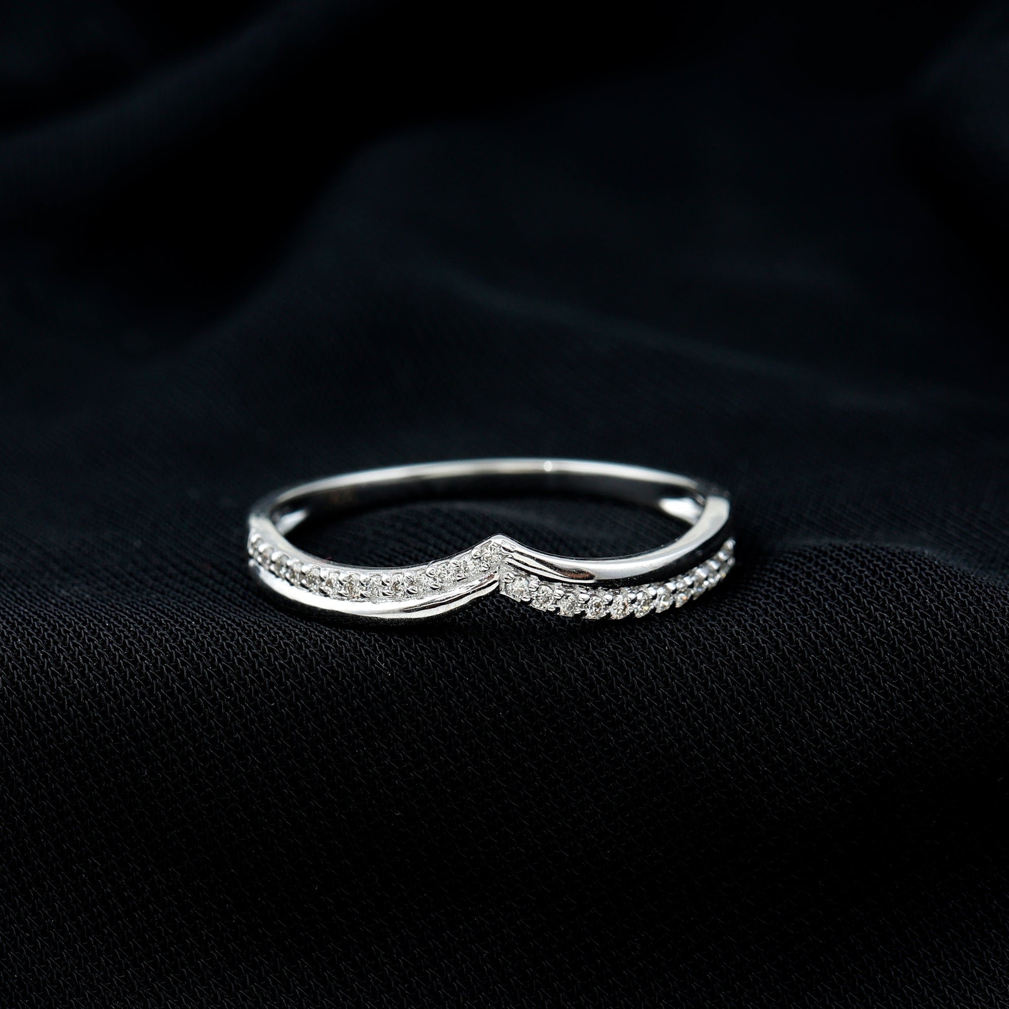 Pave Set Round Cut Natural Diamond Chevron Ring