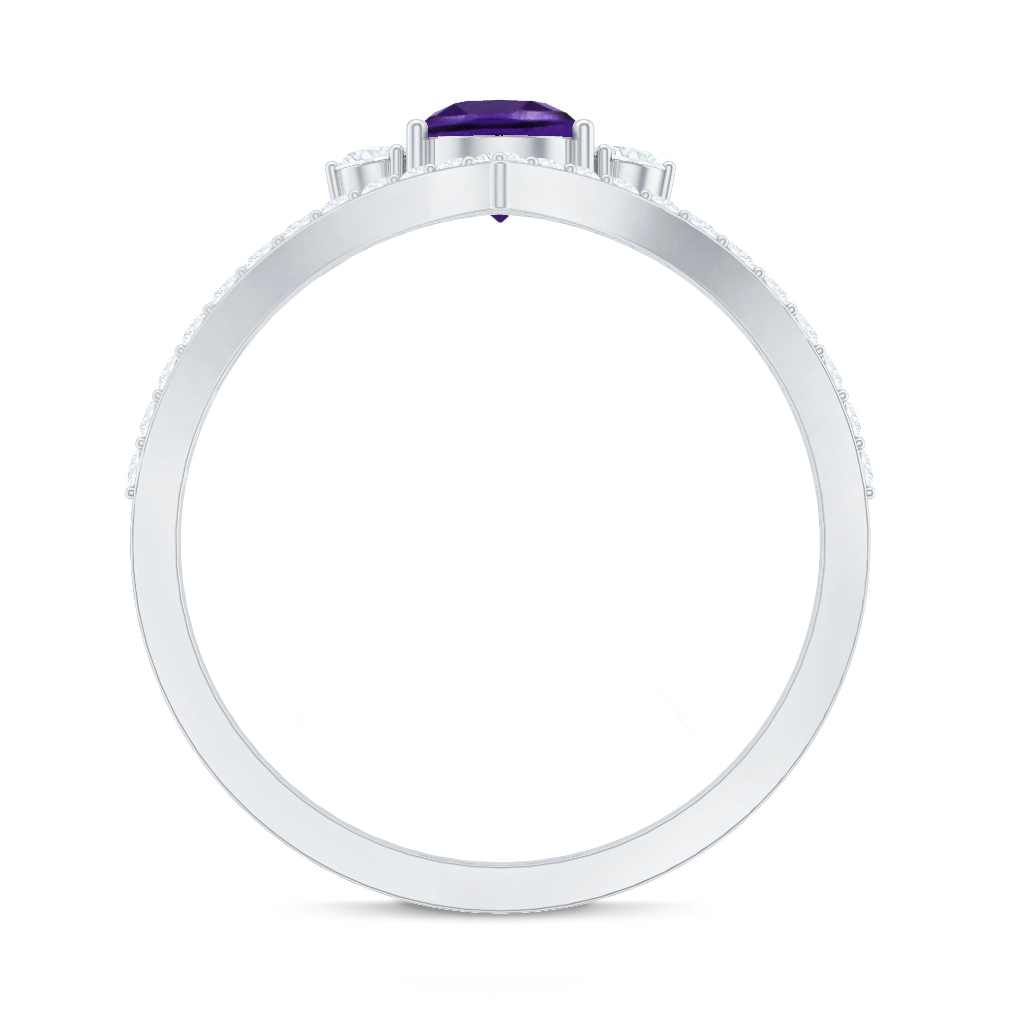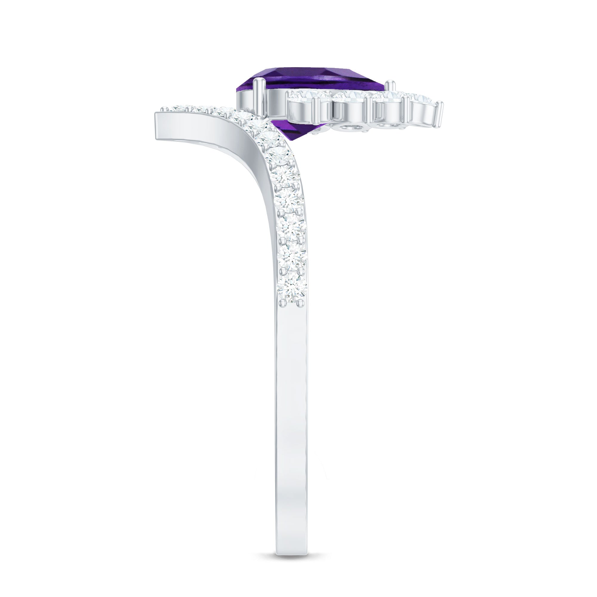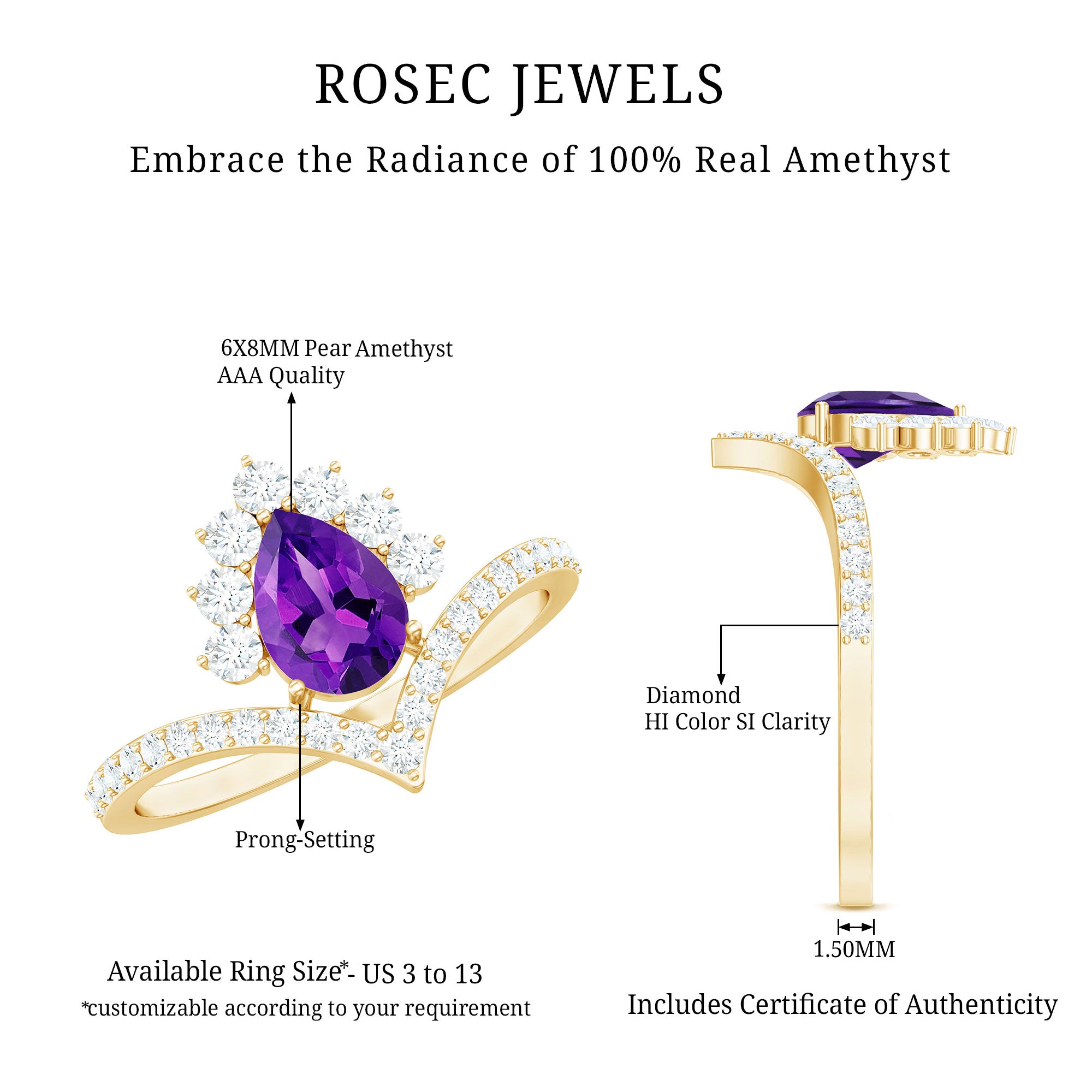 Indulge in the captivating beauty of the Amethyst Ring, adorned with a dazzling Pear Cut Amethyst delicately set in an Accent Setting alongside shimmering Diamond gems. This exquisite Amethyst Crown Ring is a true masterpiece of jewelry design. Its timeless allure makes it a perfect accessory that can be cherished and worn for a lifetime, adding a touch of elegance and sophistication to any ensemble.