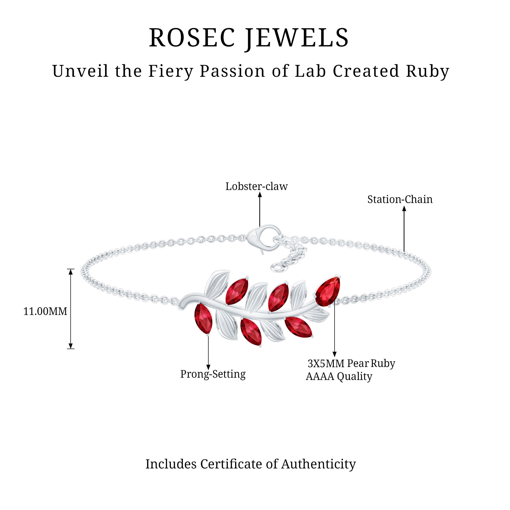 Pear and Marquise Cut Lab Created Ruby Leaf Chain Bracelet