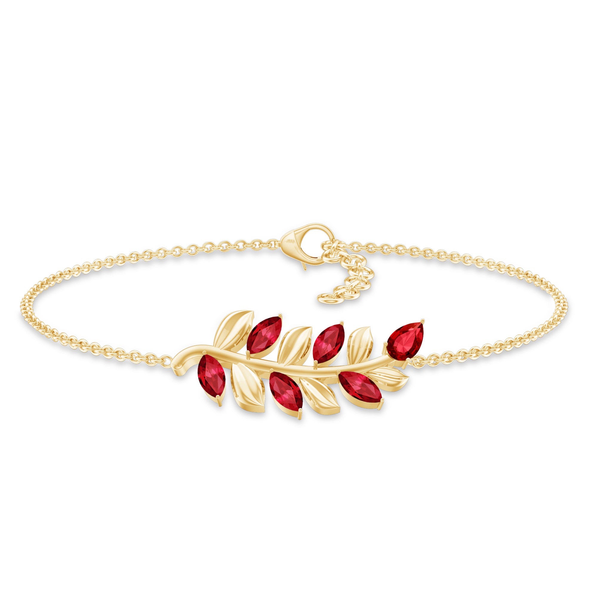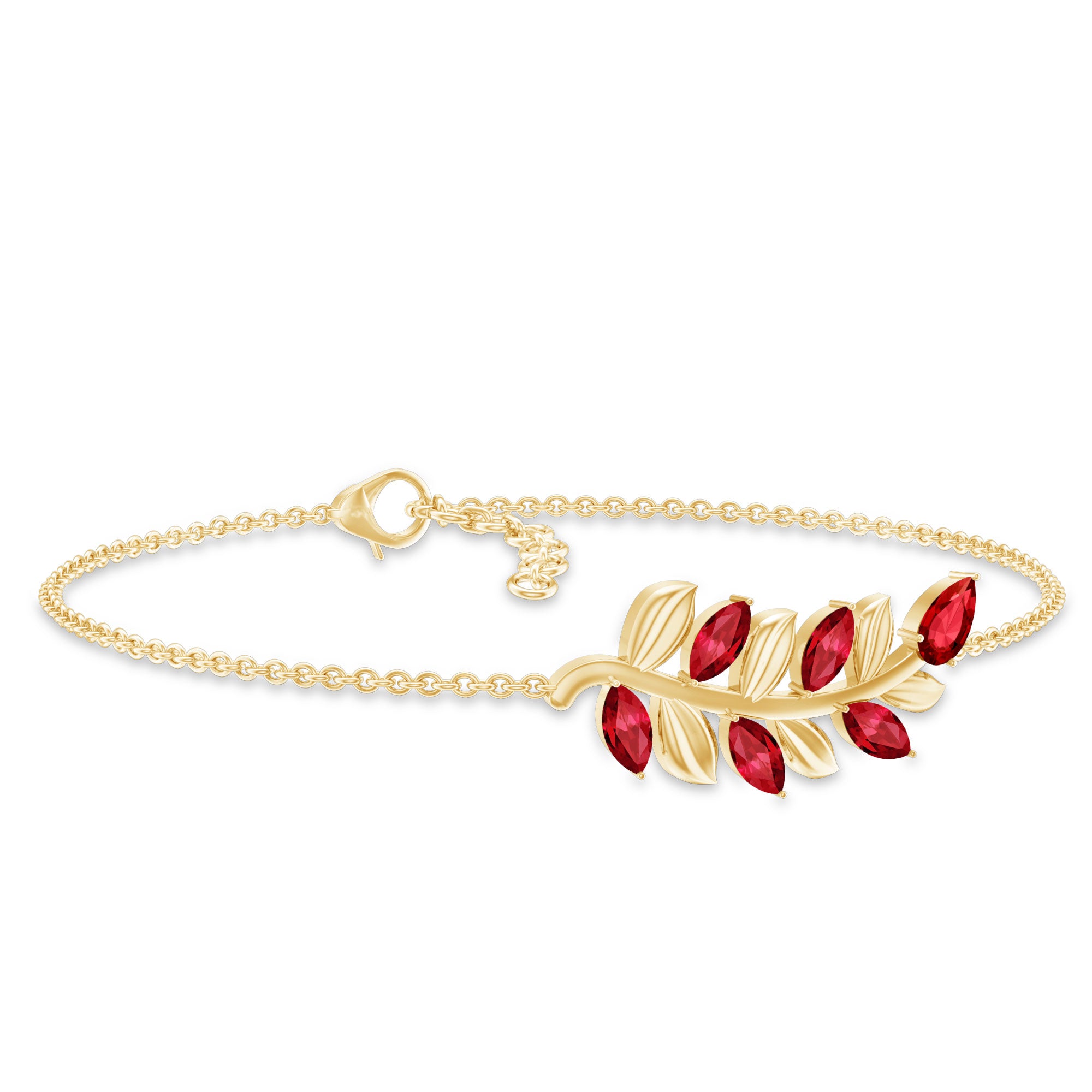 Enhance your wrist with this Leaf Bracelet, featuring marquise & pear shape Lab Created Ruby set in prong setting. Express your affection by presenting this Lab Created Ruby Bracelet to your beloved; its captivating charm makes it a wonderful and considerate gift for her. The exquisite harmony between the luxurious AAAA Quality Created Ruby stones narrates a story of balance, where sophistication intertwines with commitment. Meticulously crafted and designed to captivate, this Minimal Bracelet serves as a genuine symbol of everlasting love. Ideal for a proposal, anniversary, or significant promise, this Chain Bracelet for Women stands as an unforgettable representation of your deepest intentions. Delivered in a signature jewelry box and offered in a range of ring sizes, this Bracelet is prepared for gifting and ready to commence the next chapter of your romantic journey.