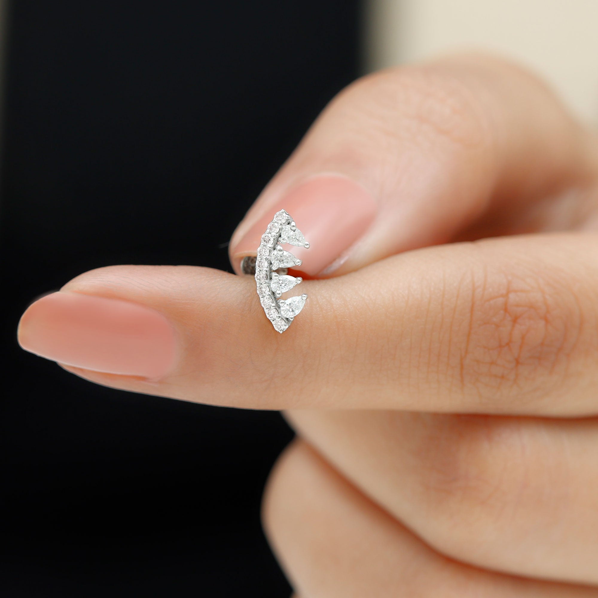 Make a bold fashion statement with the Curved Cartilage Earring, a stunning piece of piercing jewelry that is sure to turn heads. This earring is adorned with beautiful Pear and Round Cut Moissanites, making it the perfect accessory to elevate both casual and special occasion looks. Crafted from high-quality Gold, this Cartilage Earring is a timeless piece that will add a touch of luxury and glamour to your style.
