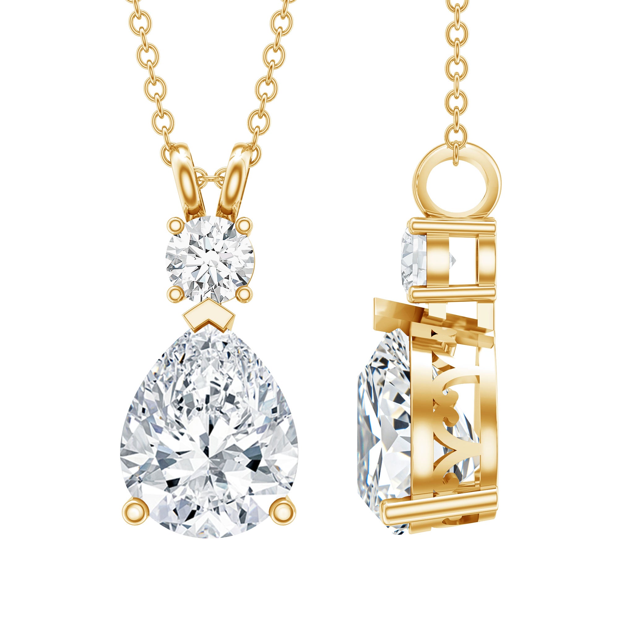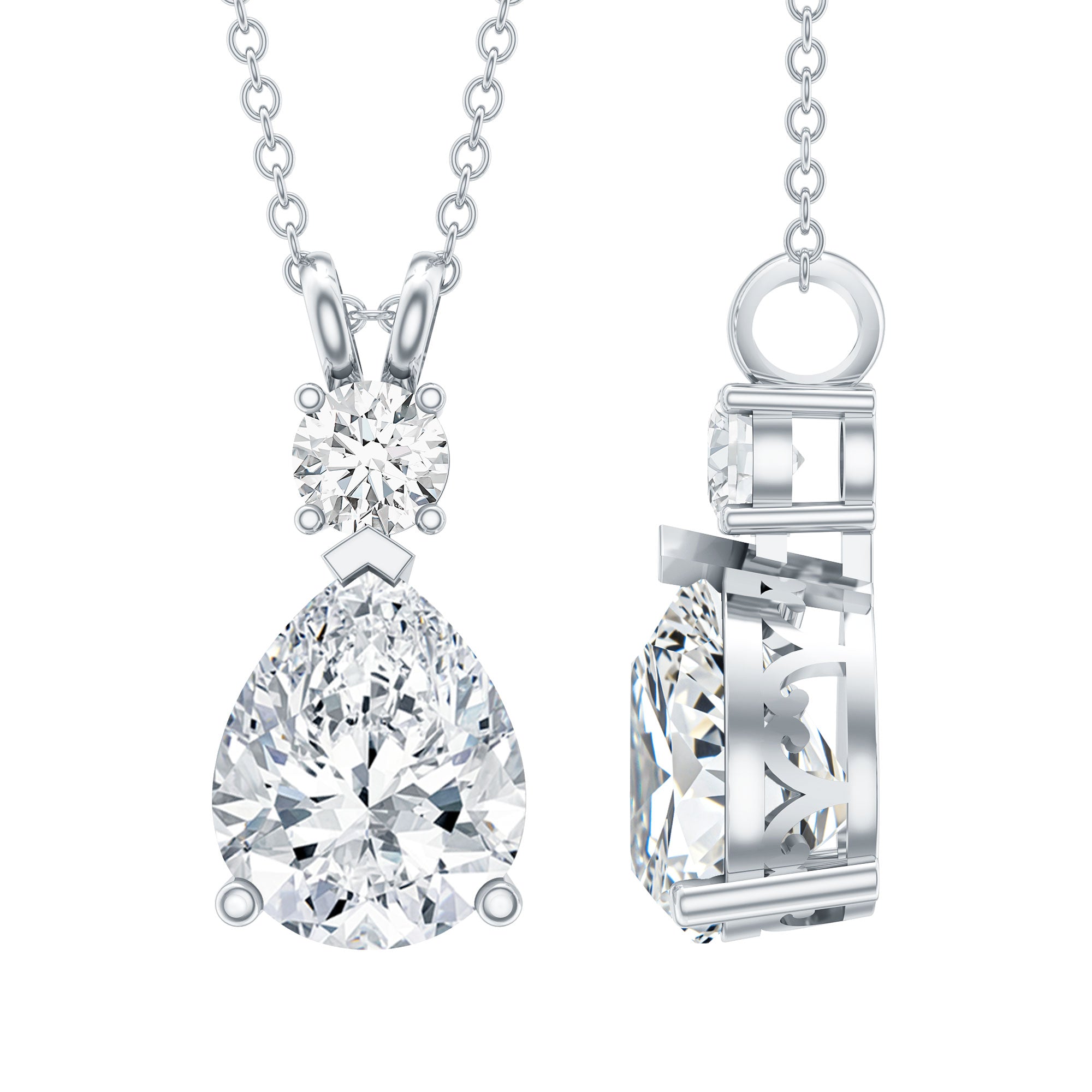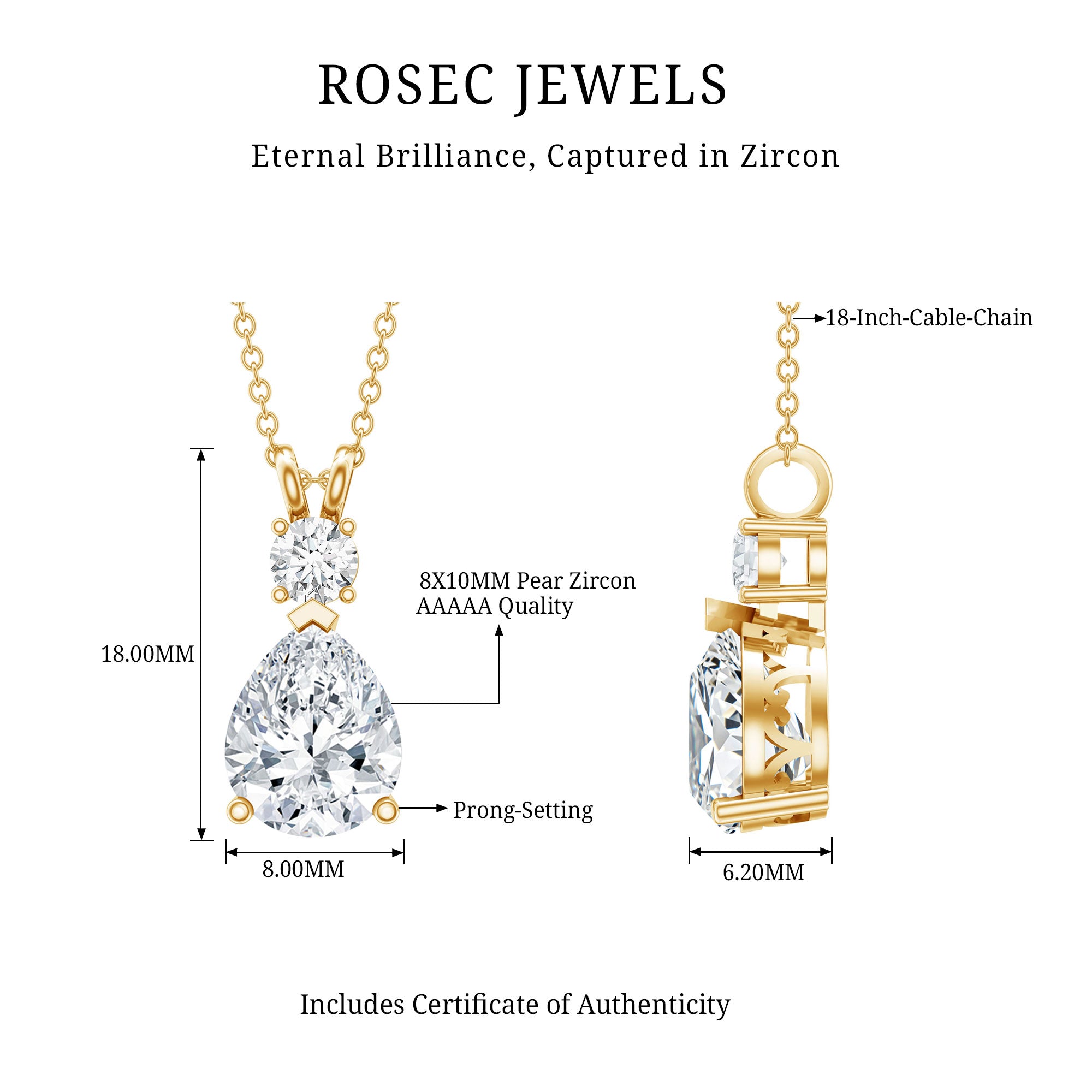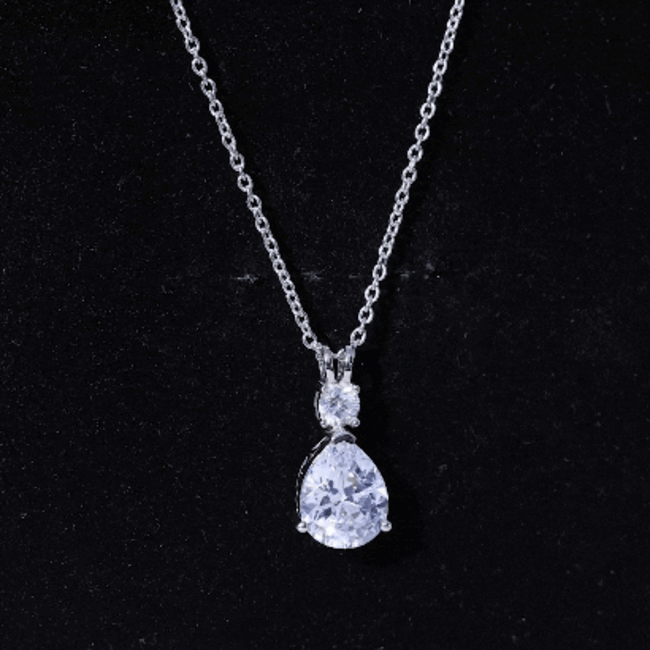This Zircon Pendant Bridal Necklace exudes a classic shine which makes it perfect to be worn as a statement piece with official or casual looks. It features an 8X10 MM Pear shape Moissanite securely placed in Prong Setting. This Pear Necklace beholds the remarkable shine of 5A Zircon that makes you the center of attraction. This pendant can be a beautiful choice for your special lady on her birthday or anniversary. This Drop Necklace will be shipped to you in a premium quality packaging with the certificate of authenticity.