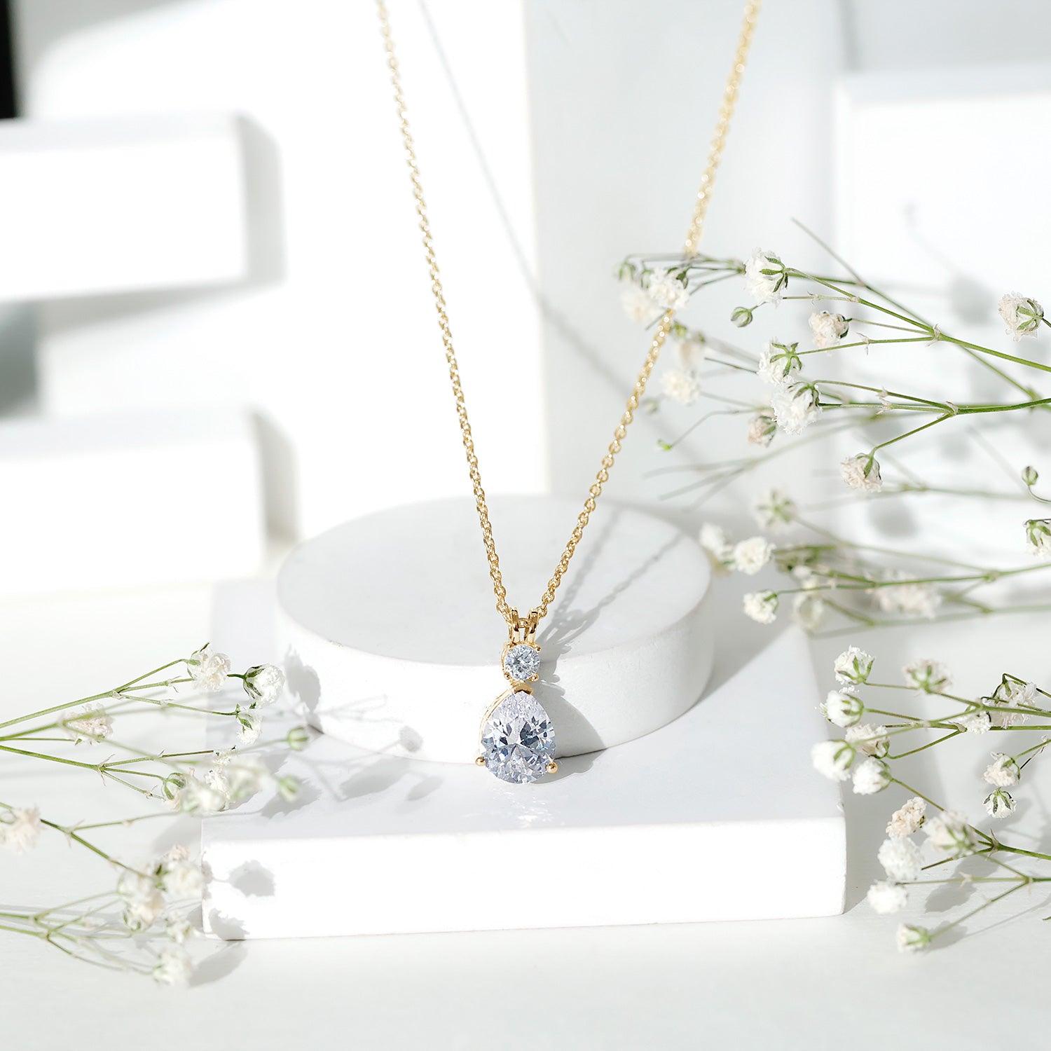 Pear and Round Shaped Zirconia Drop Pendant