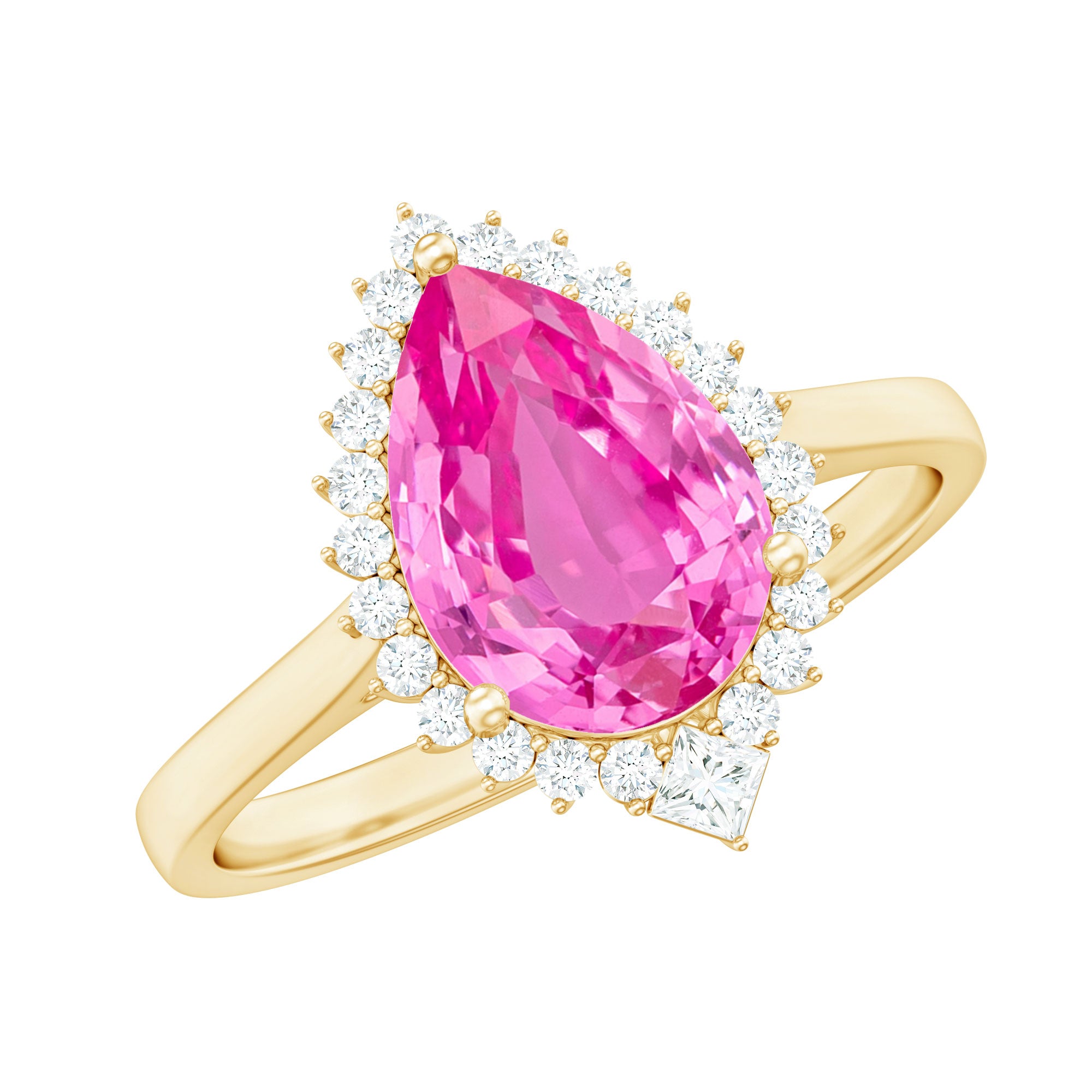 Pear Created Pink Sapphire Cocktail Halo Ring with Diamond