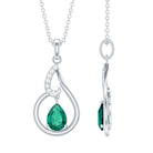 Pear Cut 5X7 MM Lab Emerald Teardrop Necklace with Silver Chain