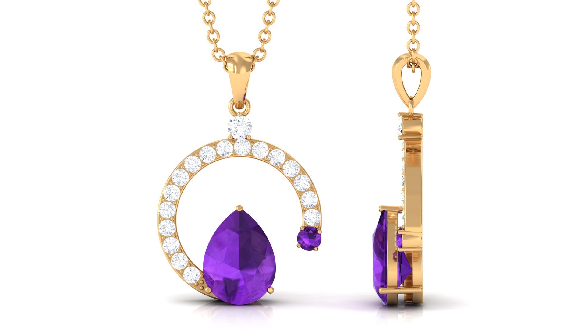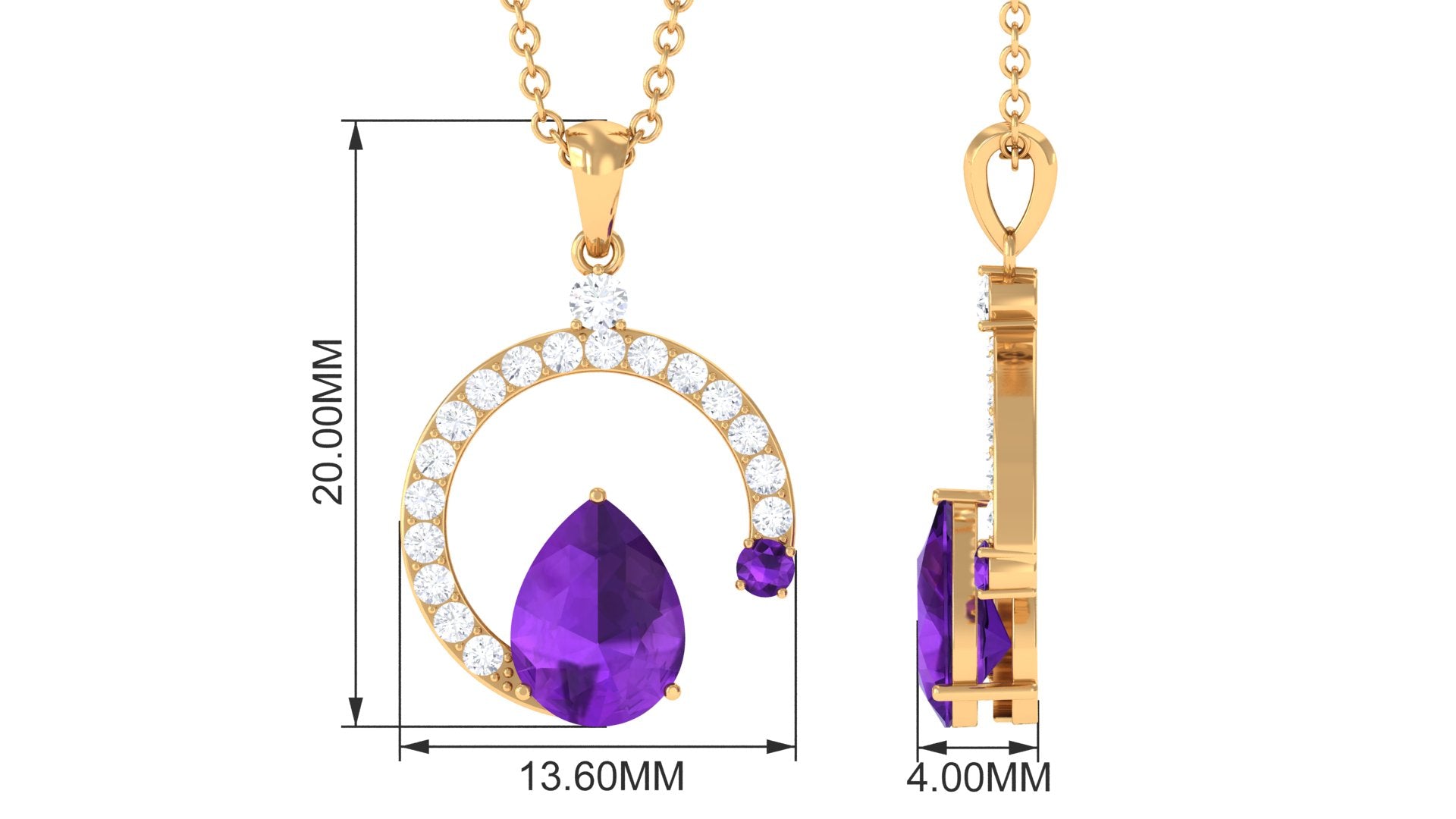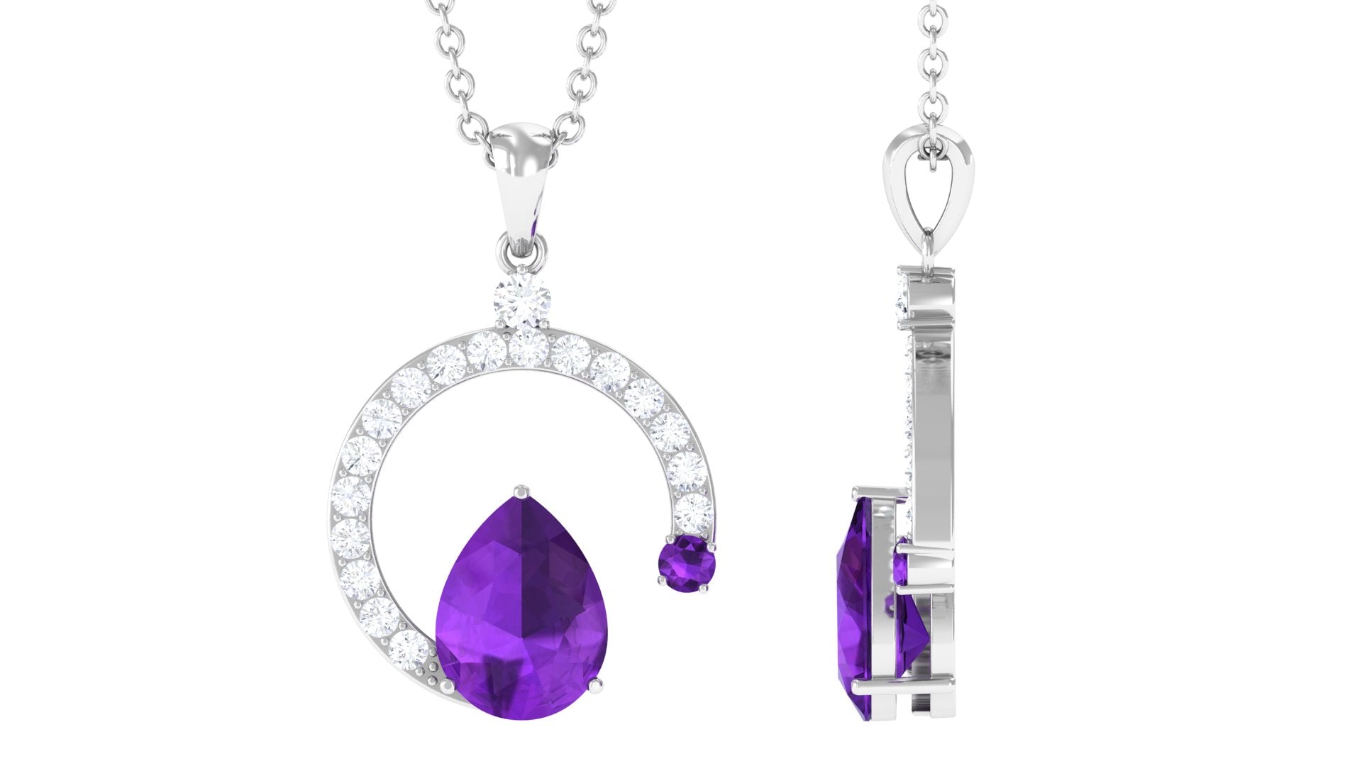 Pear Cut Amethyst Teardrop Pendant with Diamond