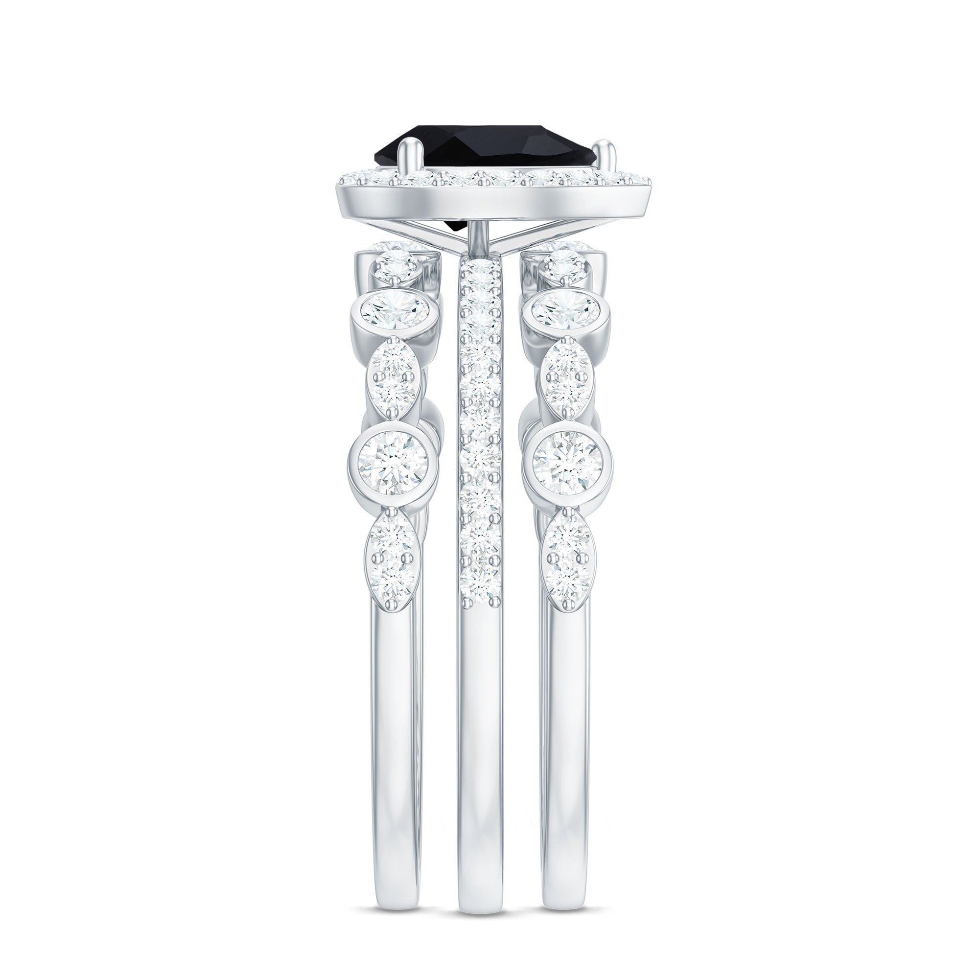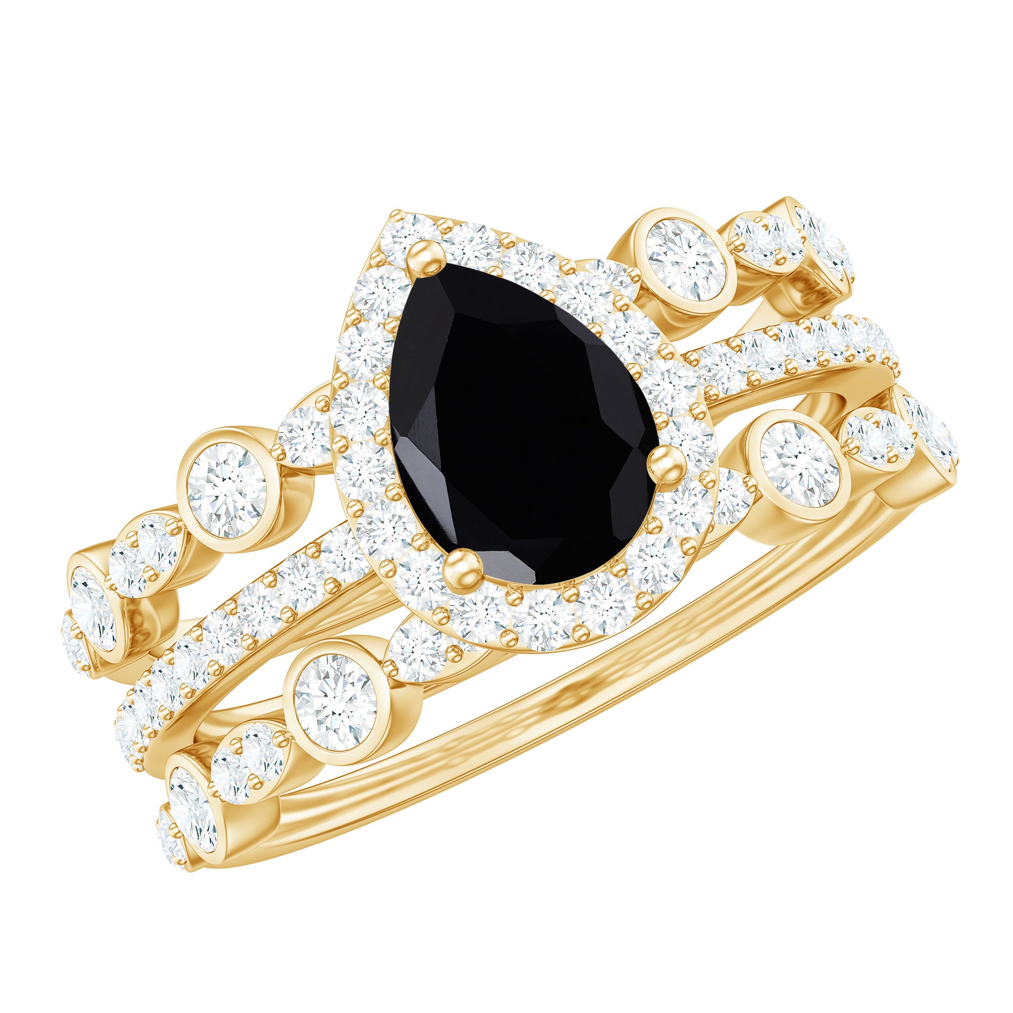 6x8mm Pear Cut Black Onyx Statement Ring Set with Moissanite Bands