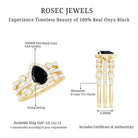 Your bride deserves a ring that shines as brightly as her smile, and this Moissanite Engagement Ring Set is designed to commemorate that unforgettable occasion. Crafted with elegance and brilliance in mind, this 3 Piece Bridal Set serves as a stunning representation of everlasting love. At the core of the set is a brilliant 6X8 MM pear-shaped black onyx, meticulously cut and set in a prong setting, surrounded with tiny round shape moissanites set as halo and more as side stones. This AAA quality black onyx is known for its grounding properties, helping to center the mind, improve focus, and bring clarity amidst chaos. Its brilliance is beautifully accentuated by two coordinating ring guards, each embellished with round cut moissanite stones that gracefully frame the center ring on either side. The outcome is a glamorous Trio Wedding Ring Set that exudes elegance from every perspective. Constructed from premium materials and designed for durability, this Solitaire Wedding Set strikes the perfect balance between contemporary design and timeless beauty. Whether worn as a complete set for a striking wedding day appearance or styled individually for everyday sophistication, these rings seamlessly adapt to your lifestyle while continually reminding you of your love story. Ideal for the bride who appreciates style, sparkle, and ethical beauty, moissanite presents a thoughtful alternative to traditional gemstones, offering remarkable brilliance while being conflict-free and environmentally friendly. This Engagement Ring with Wedding Band Set is presented in a luxurious jewelry box, accompanied by a Gemstone Authenticity Certificate, ensuring peace of mind and a premium unboxing experience.