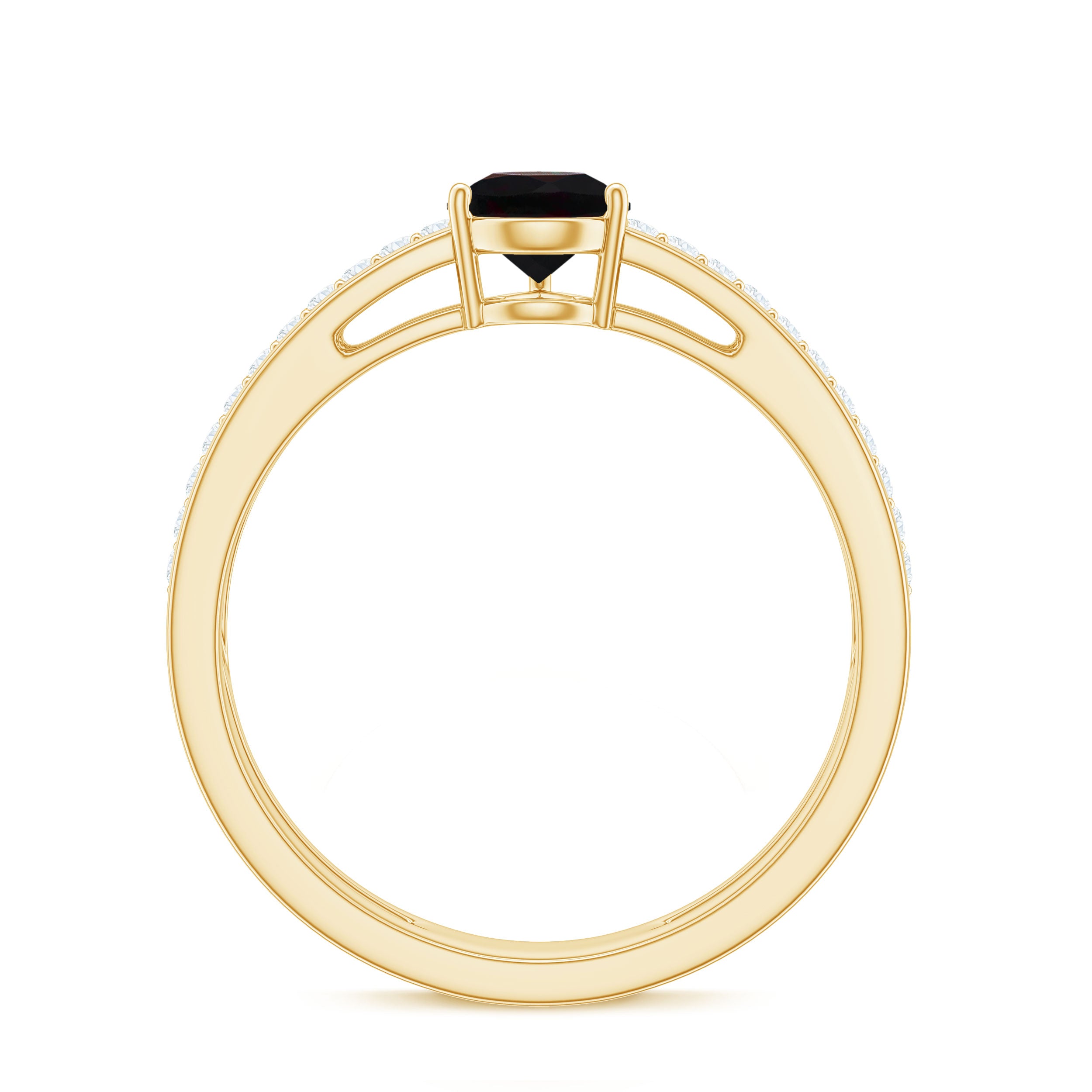 Embrace the uniqueness and understated elegance of this captivating Black Opal Ring. The Pear Cut Black Opal takes center stage in a secure prong setting, complemented by sparkling Round Diamond stones on the engagement ring. The double band design adds a touch of glamour, making it the perfect accessory to elevate your outfit and steal hearts with its timeless beauty.