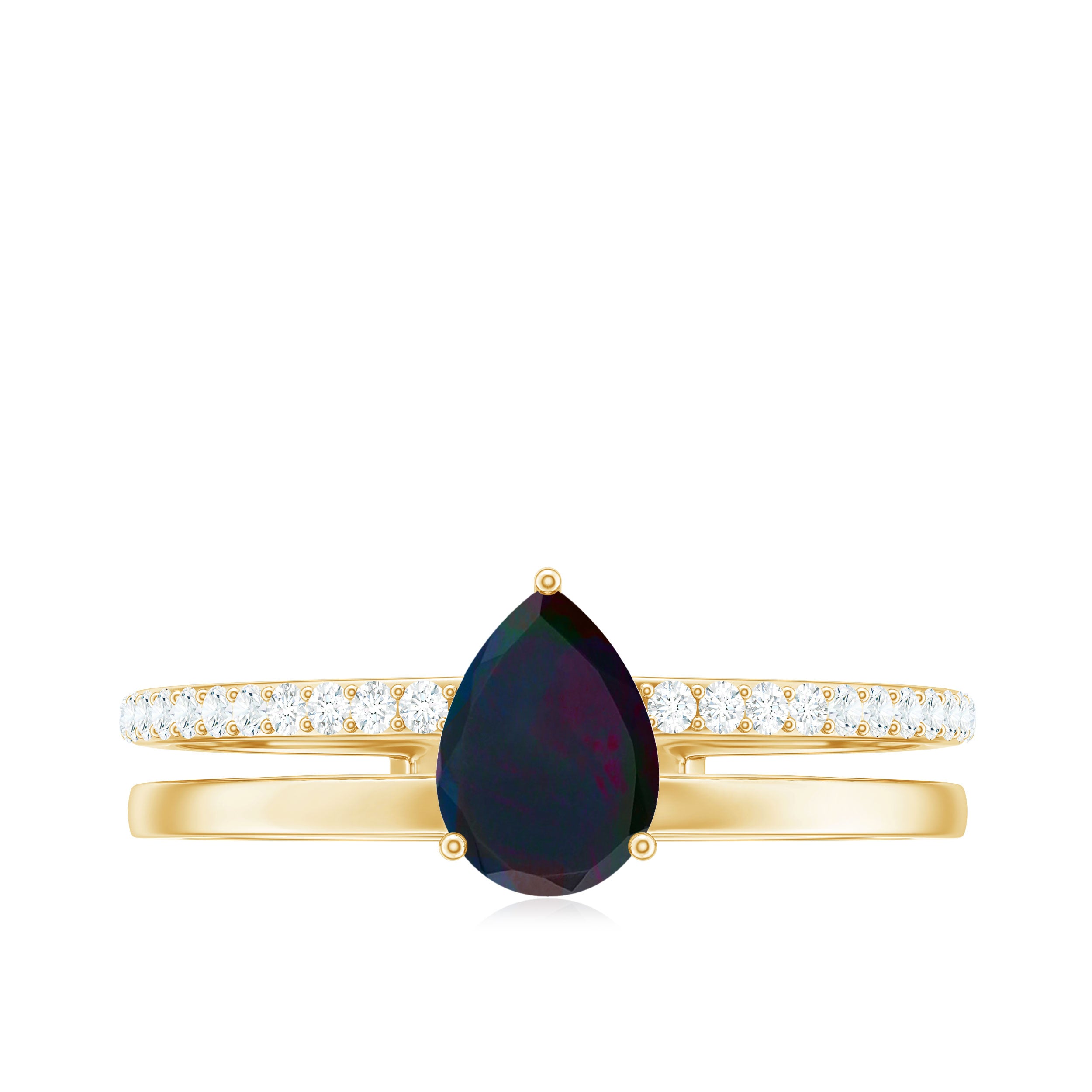 Pear Cut Black Opal and Diamond Double Band Engagement Ring
