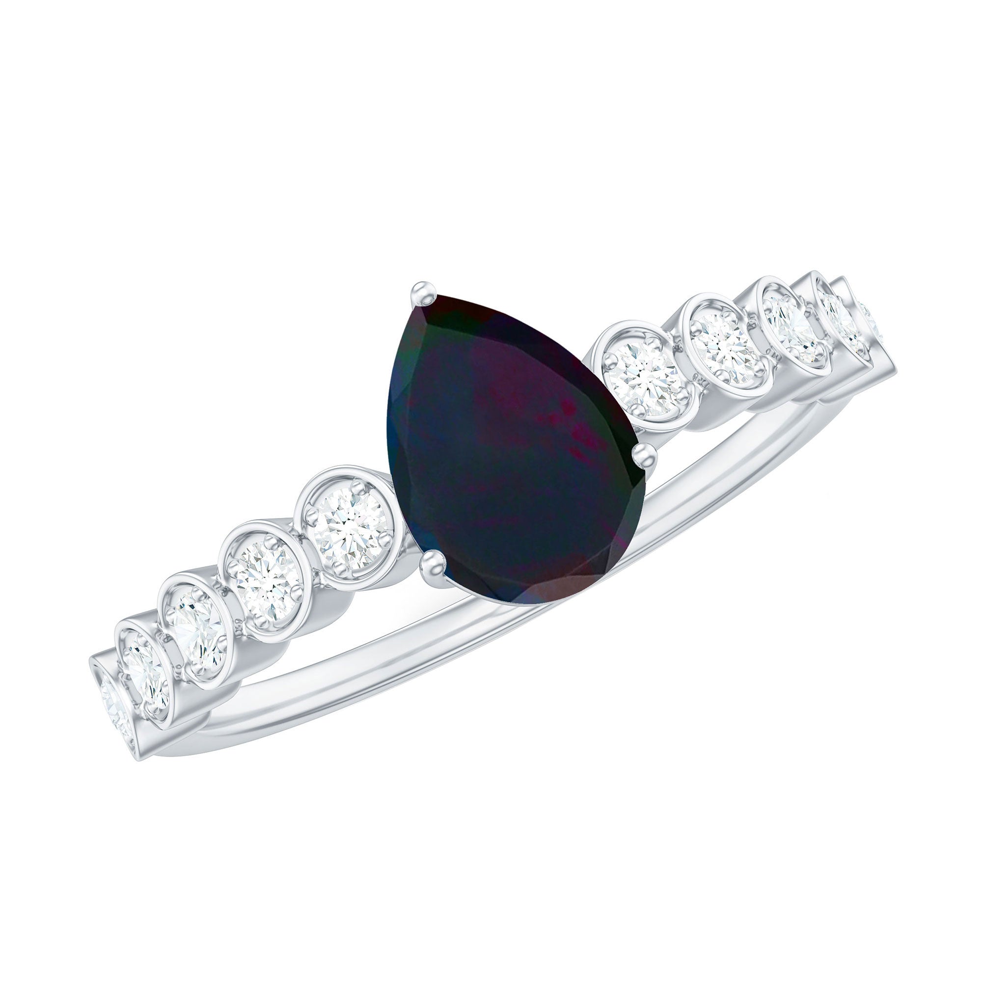 Pear Cut Black Opal and Diamond Side Stone Engagement Ring