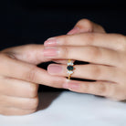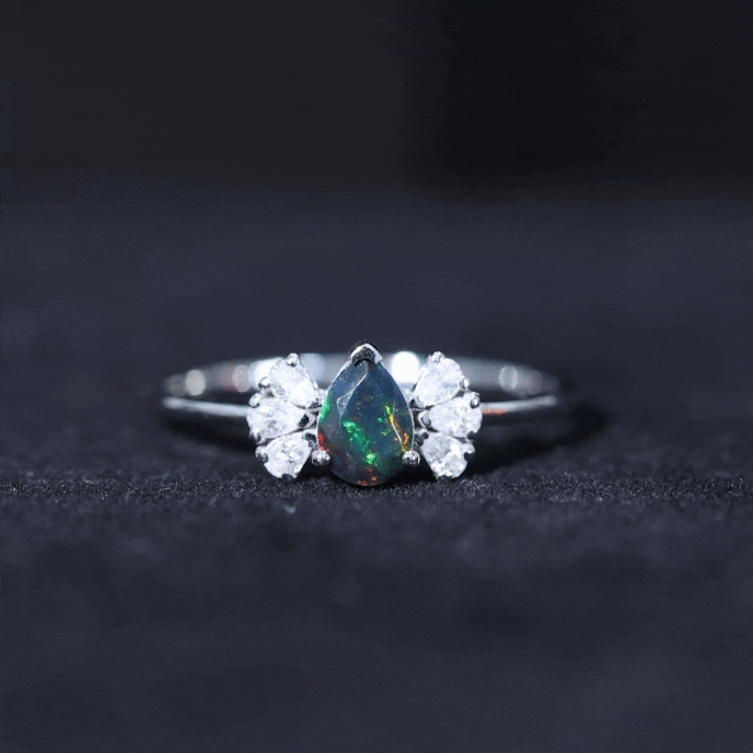 Pear Cut Black Opal Solitaire Engagement Ring with Diamond Trio