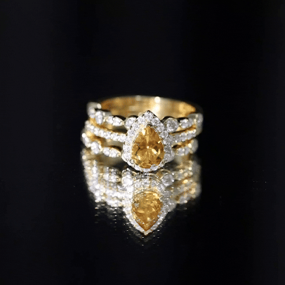 Pear Cut Citrine Bridal Trio Ring Set with Moissanite Band