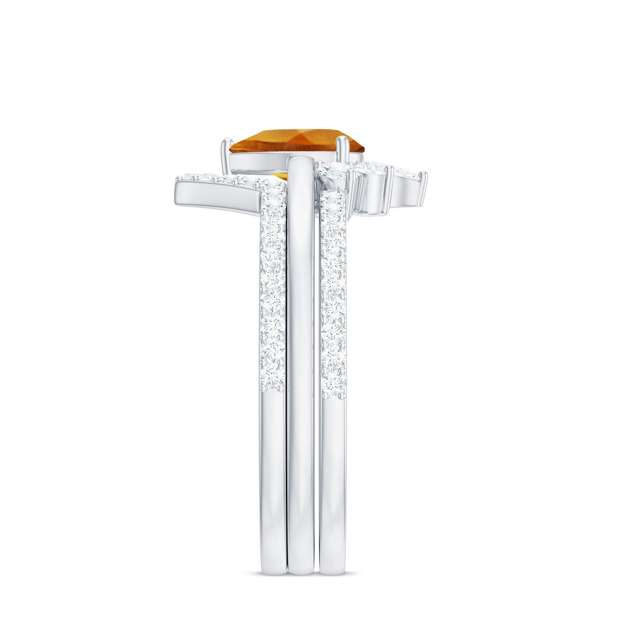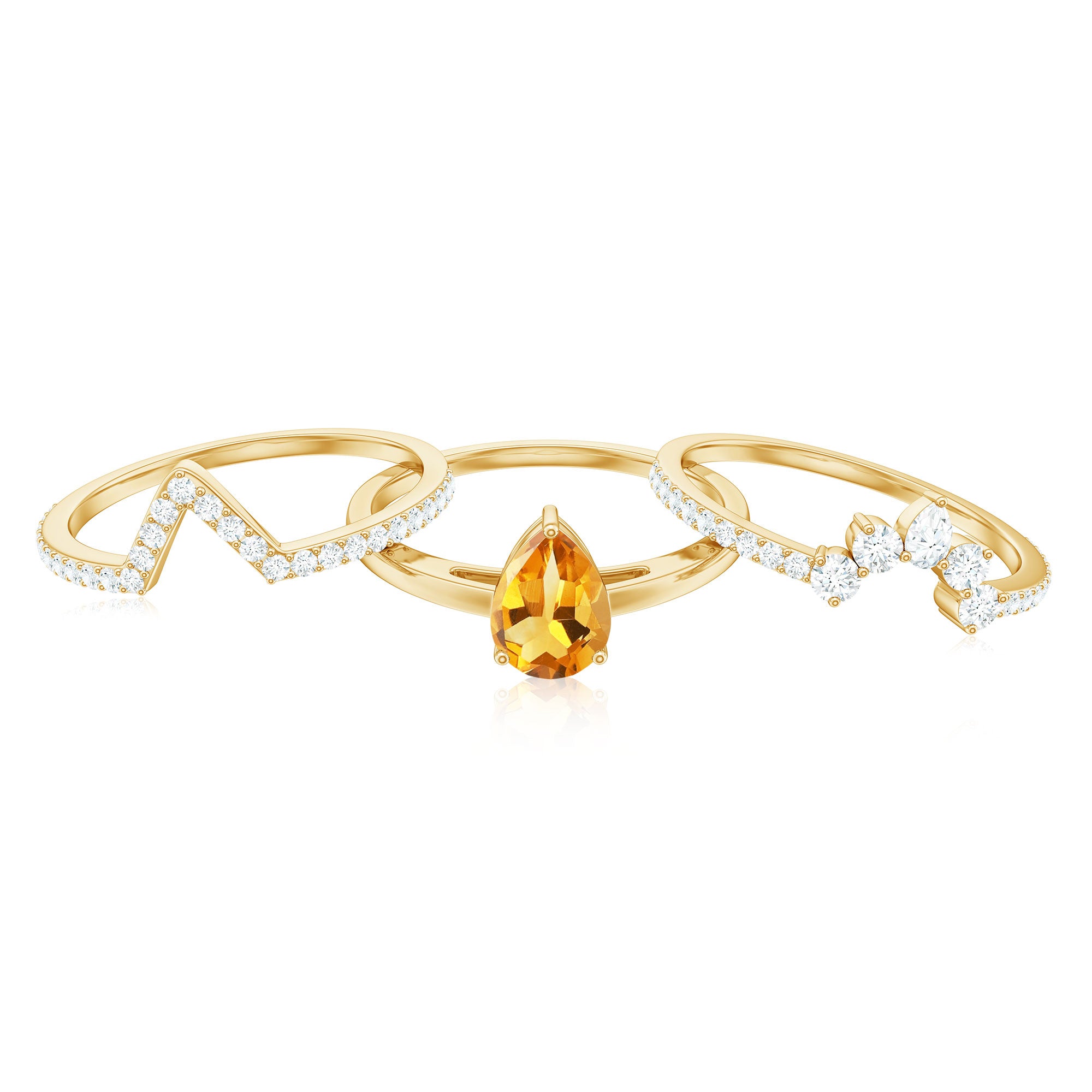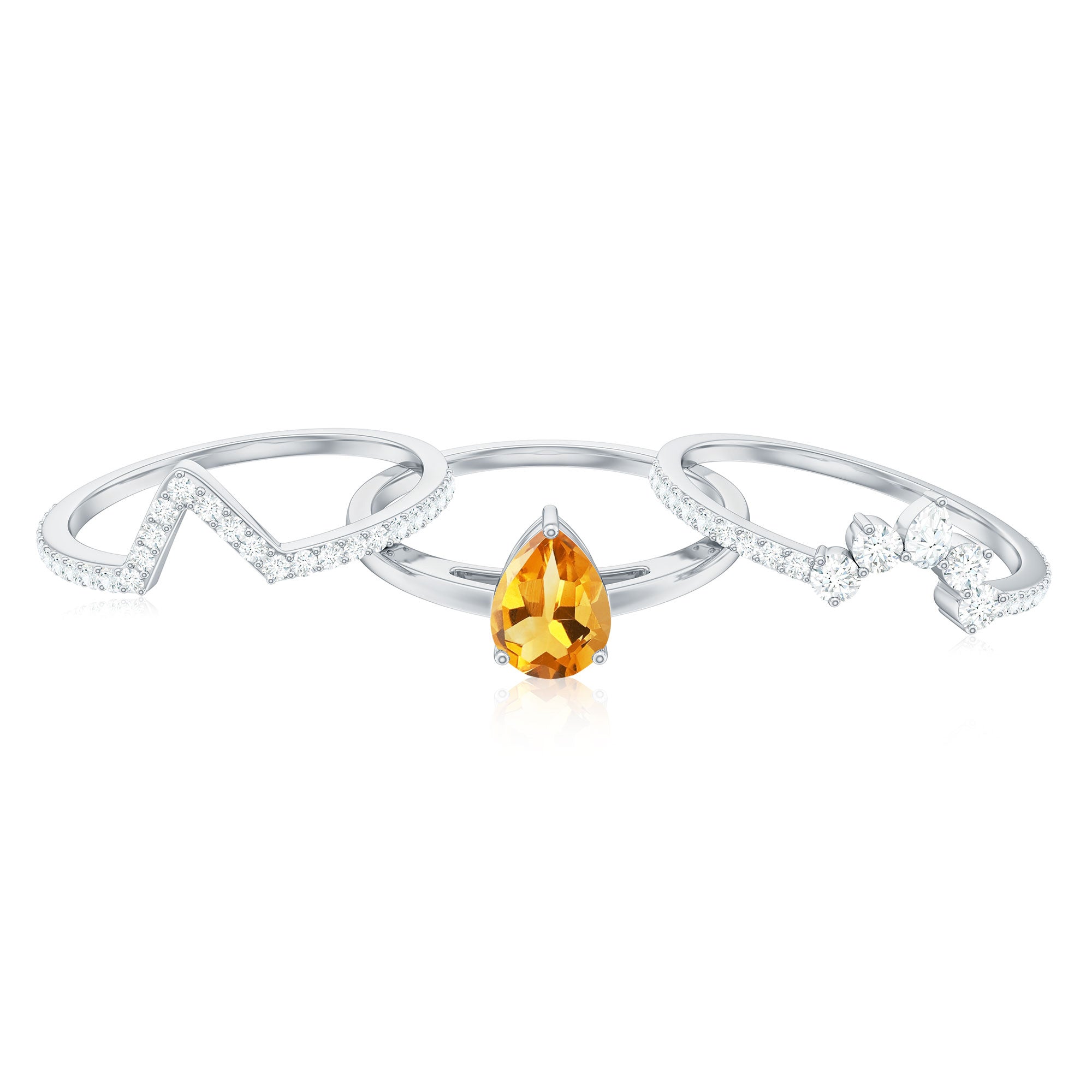 Pear Cut Citrine Trio Wedding Ring Set with Moissanite