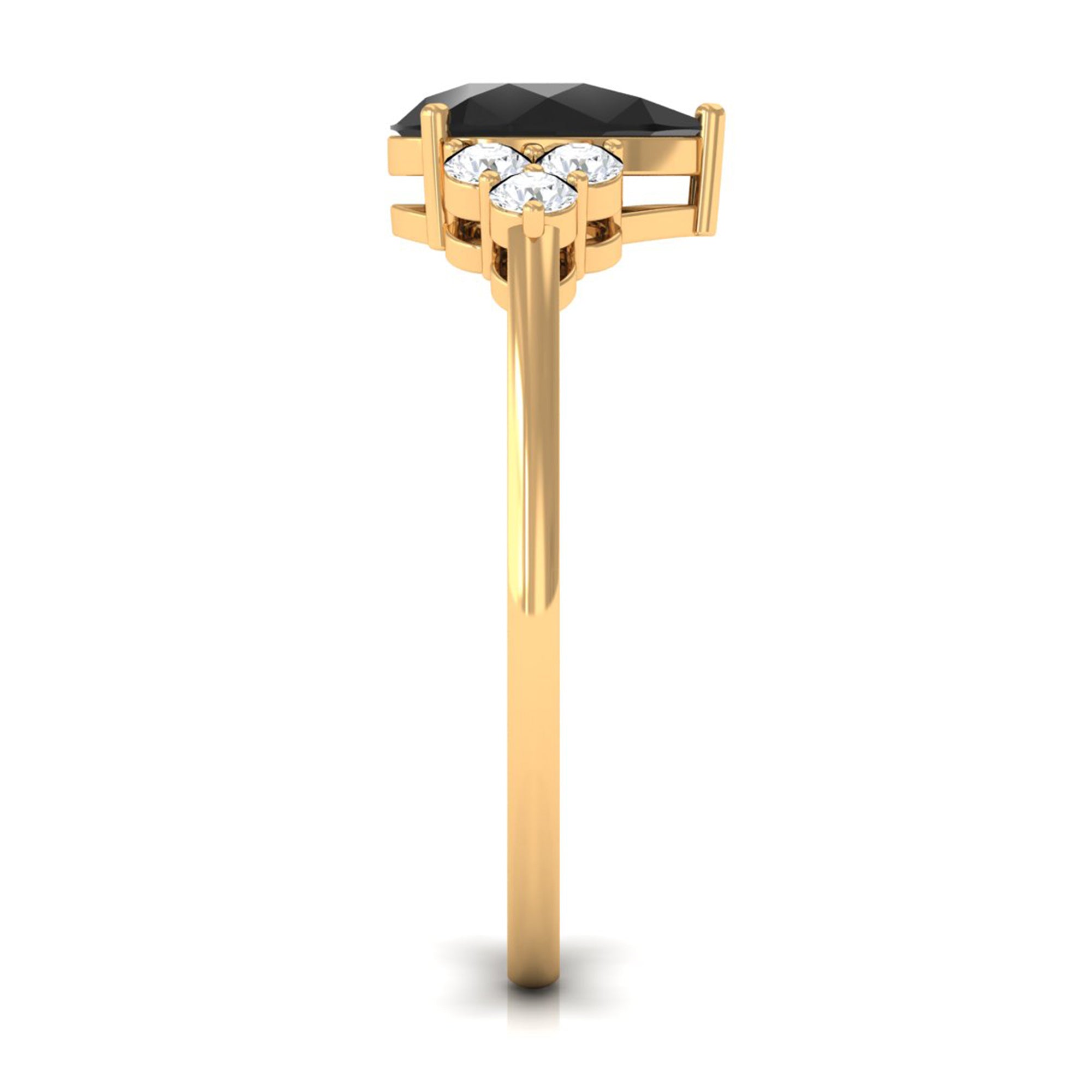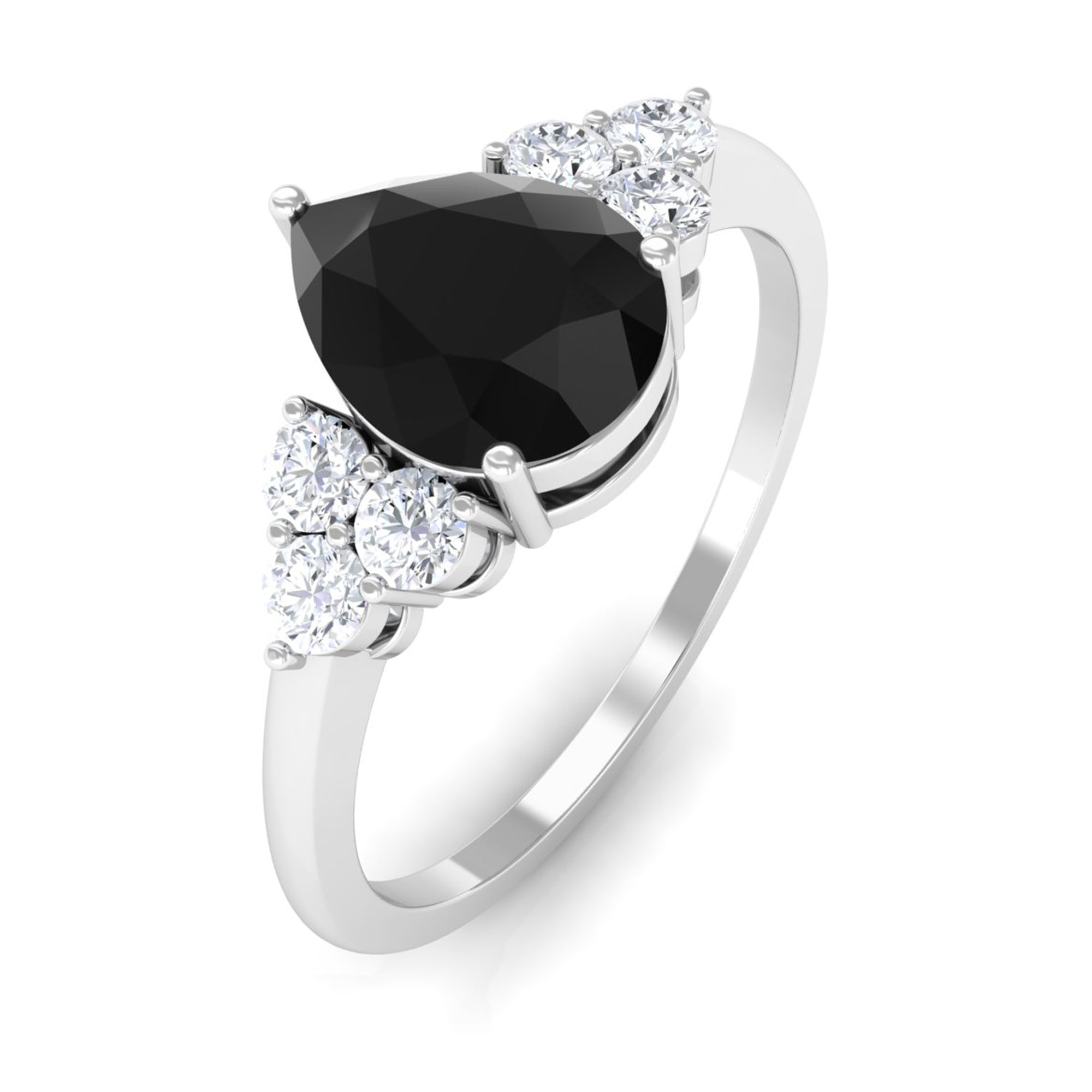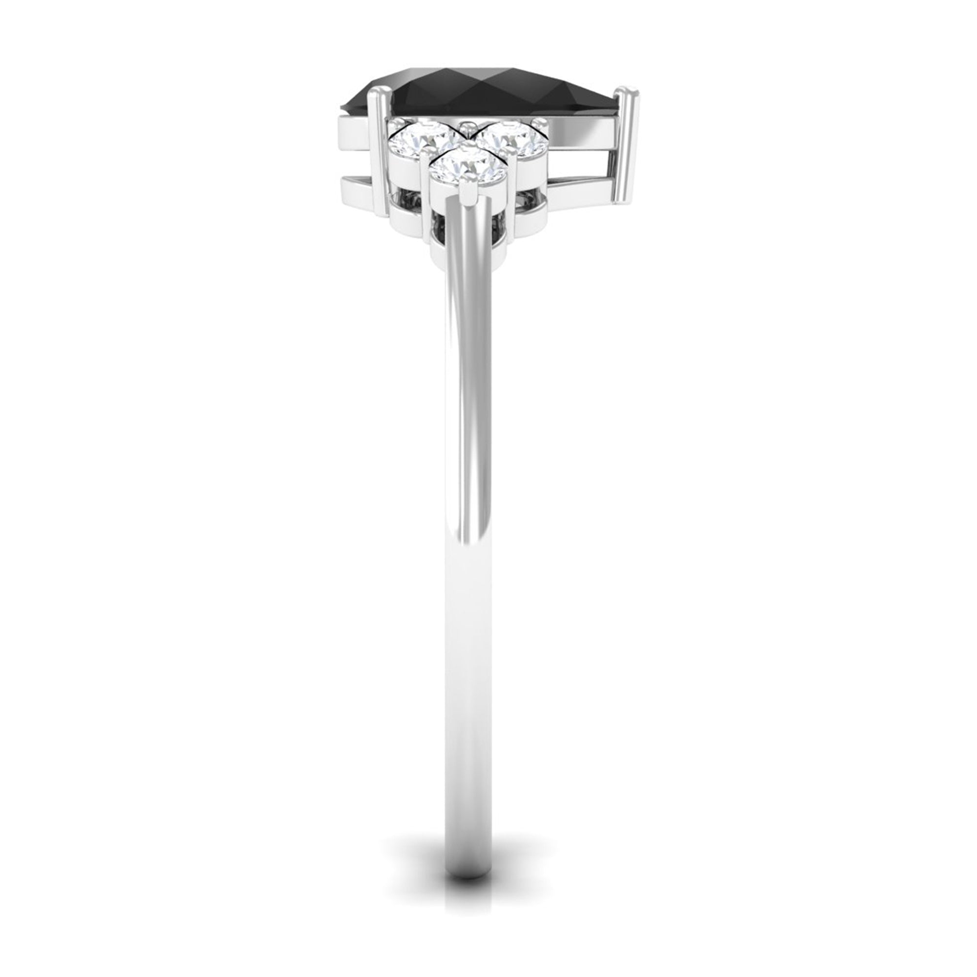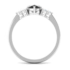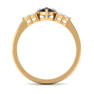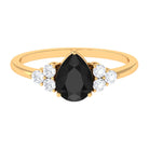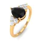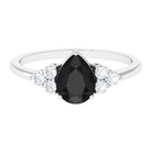 Pear Cut Created Black Diamond Solitaire Ring with Diamond Trio