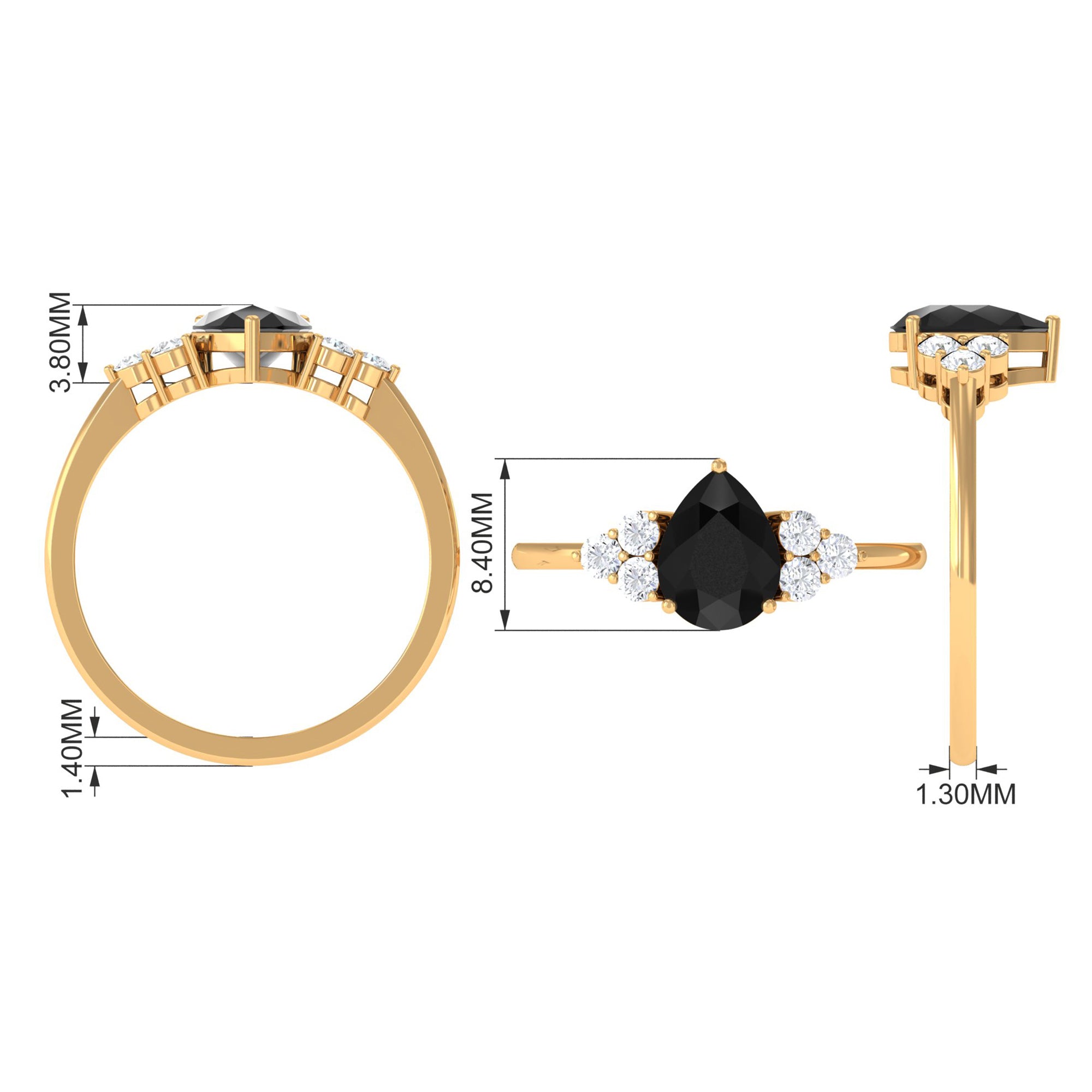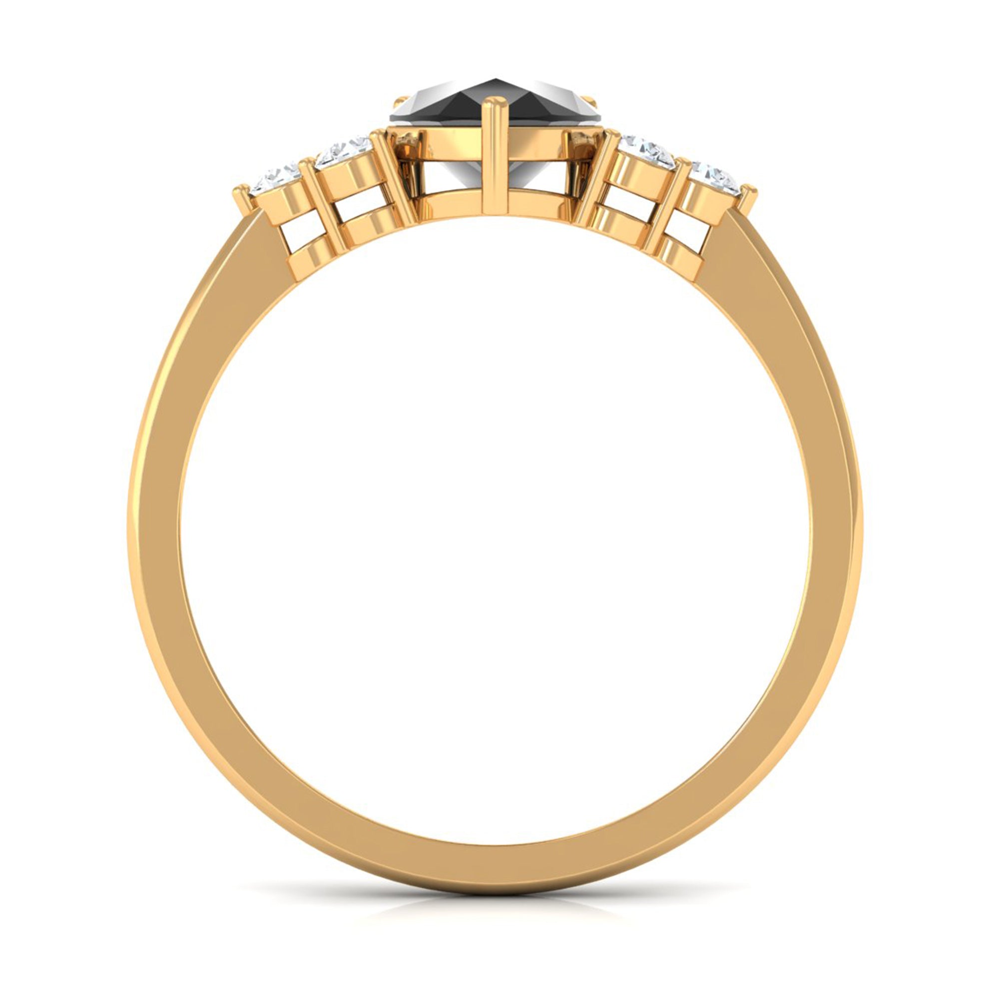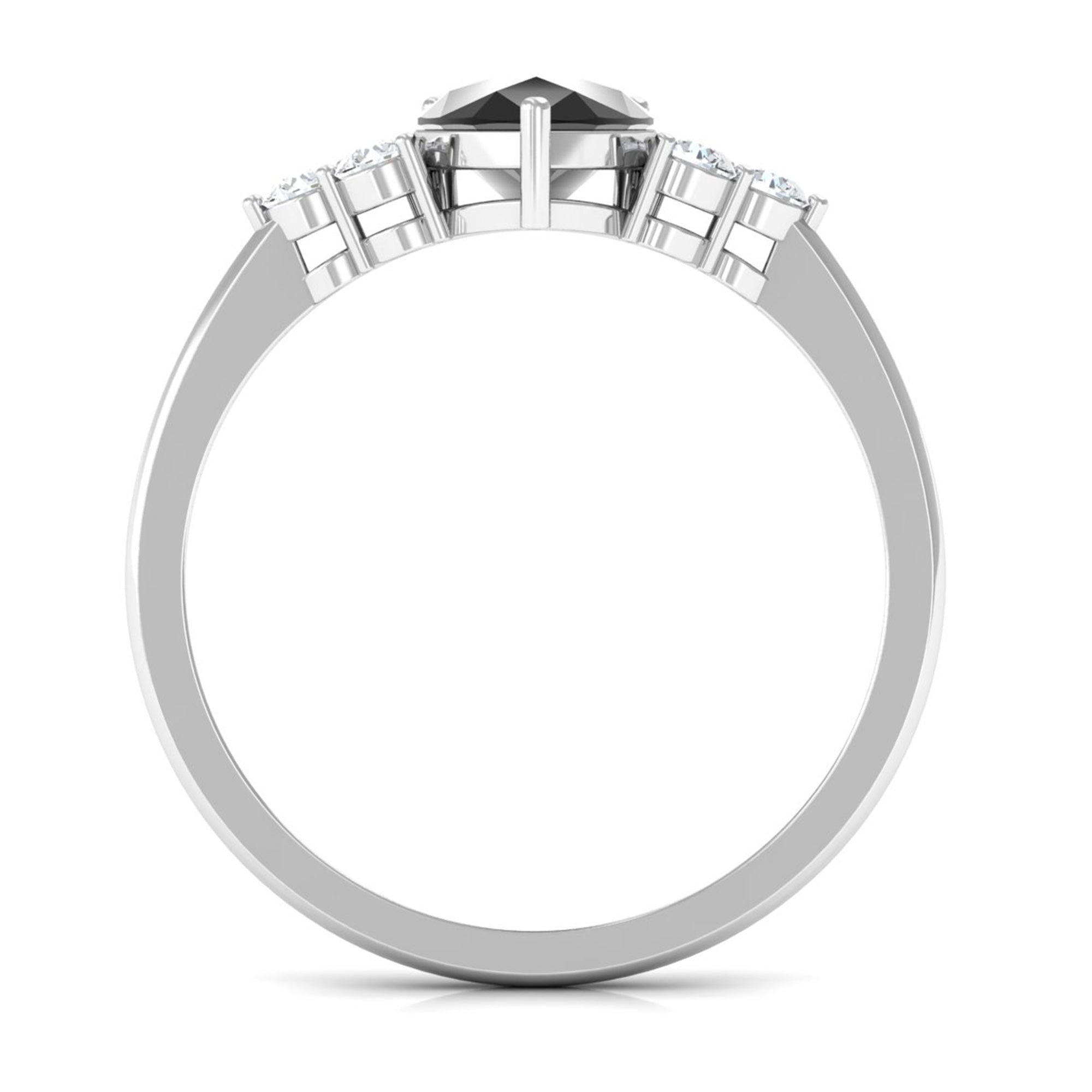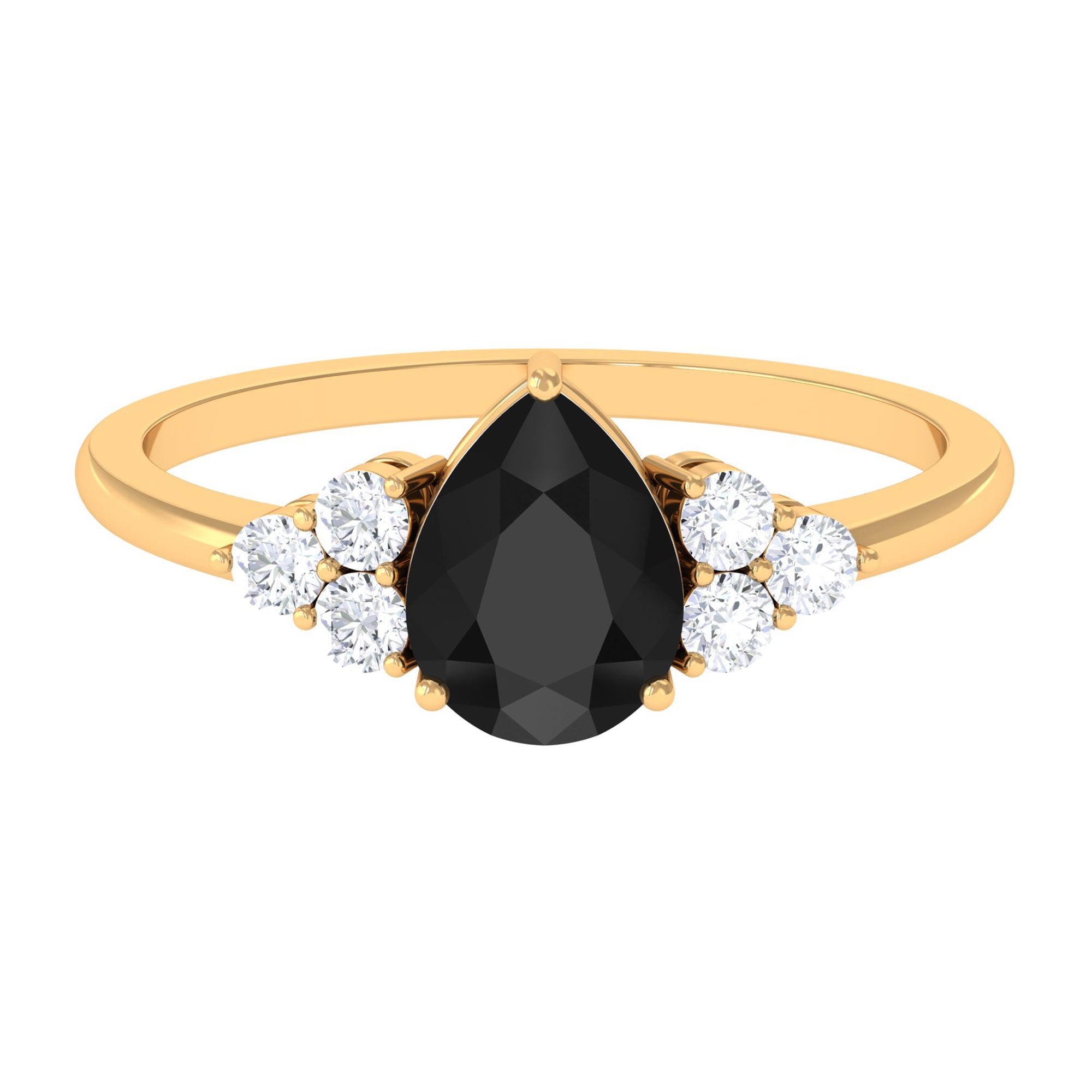 Pear Cut Created Black Diamond Solitaire Ring with Diamond Trio
