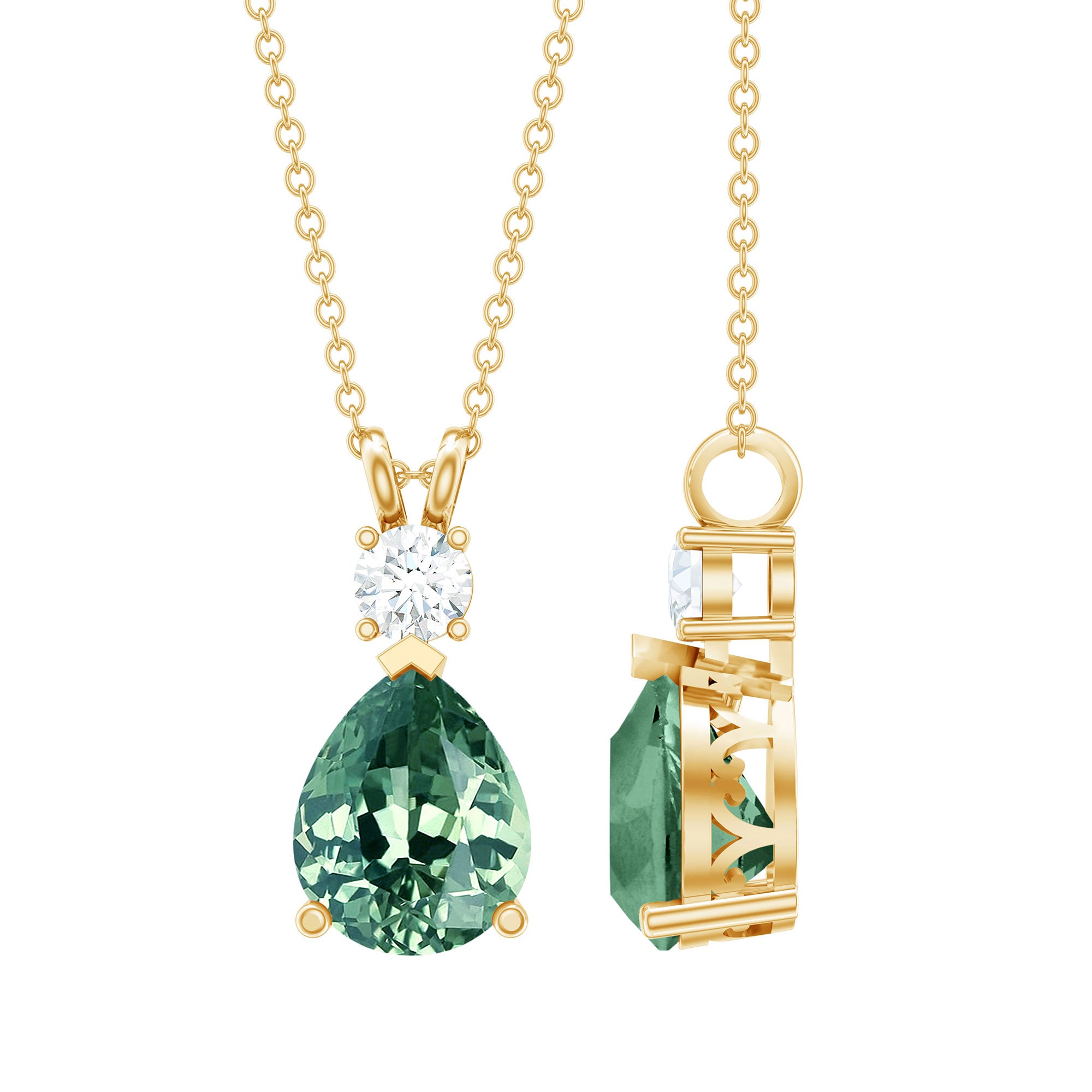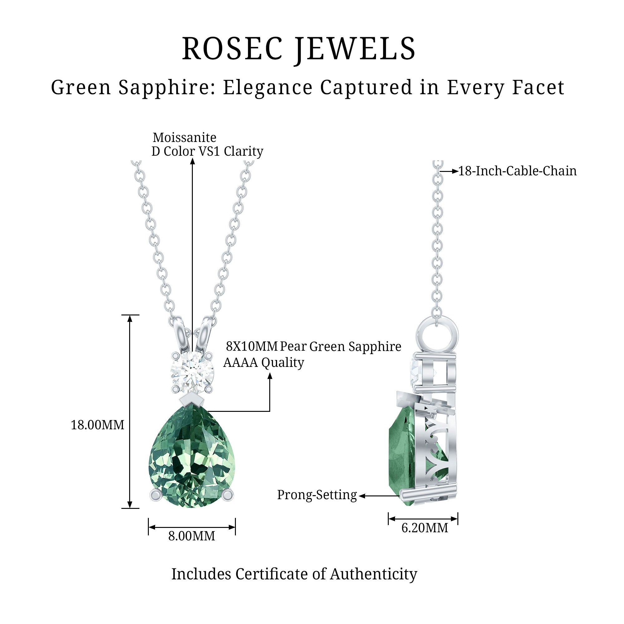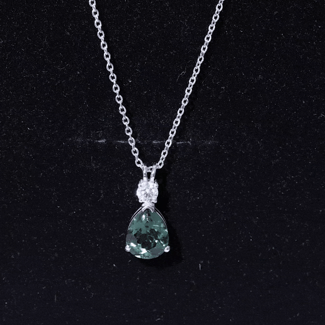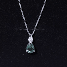 Experience allure with this Teardrop Pendant, featuring a Pear Cut Created Green Sapphire adorned with a shimmering Moissanite stone on top. The captivating combination of created green sapphire and sparkling moissanite creates an elegant piece of jewelry, perfect for special occasions or as a cherished gift for a loved one.