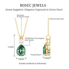 Pear Cut Created Green Sapphire Drop Pendant with Moissanite