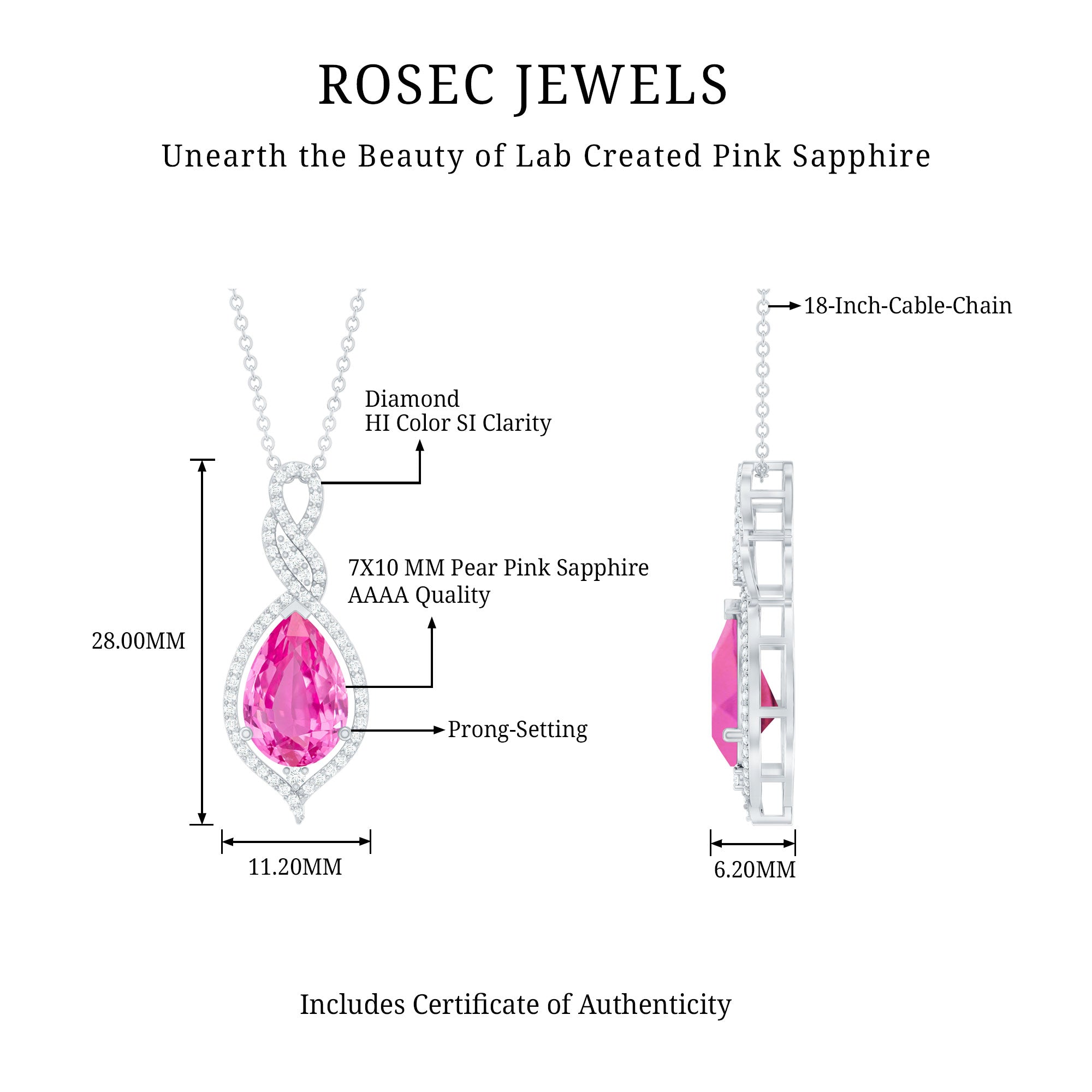 Pear Cut Created Pink Sapphire and Diamond Teardrop Pendant