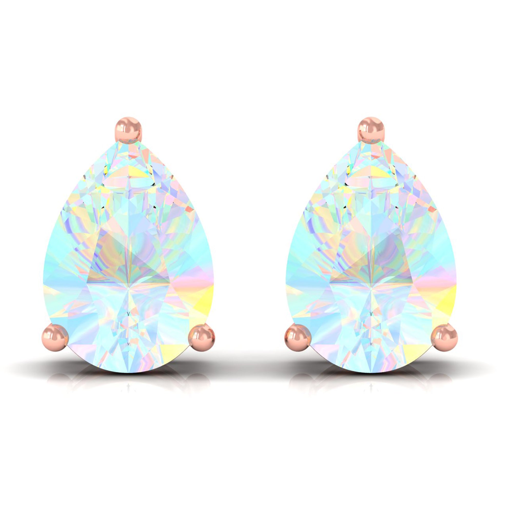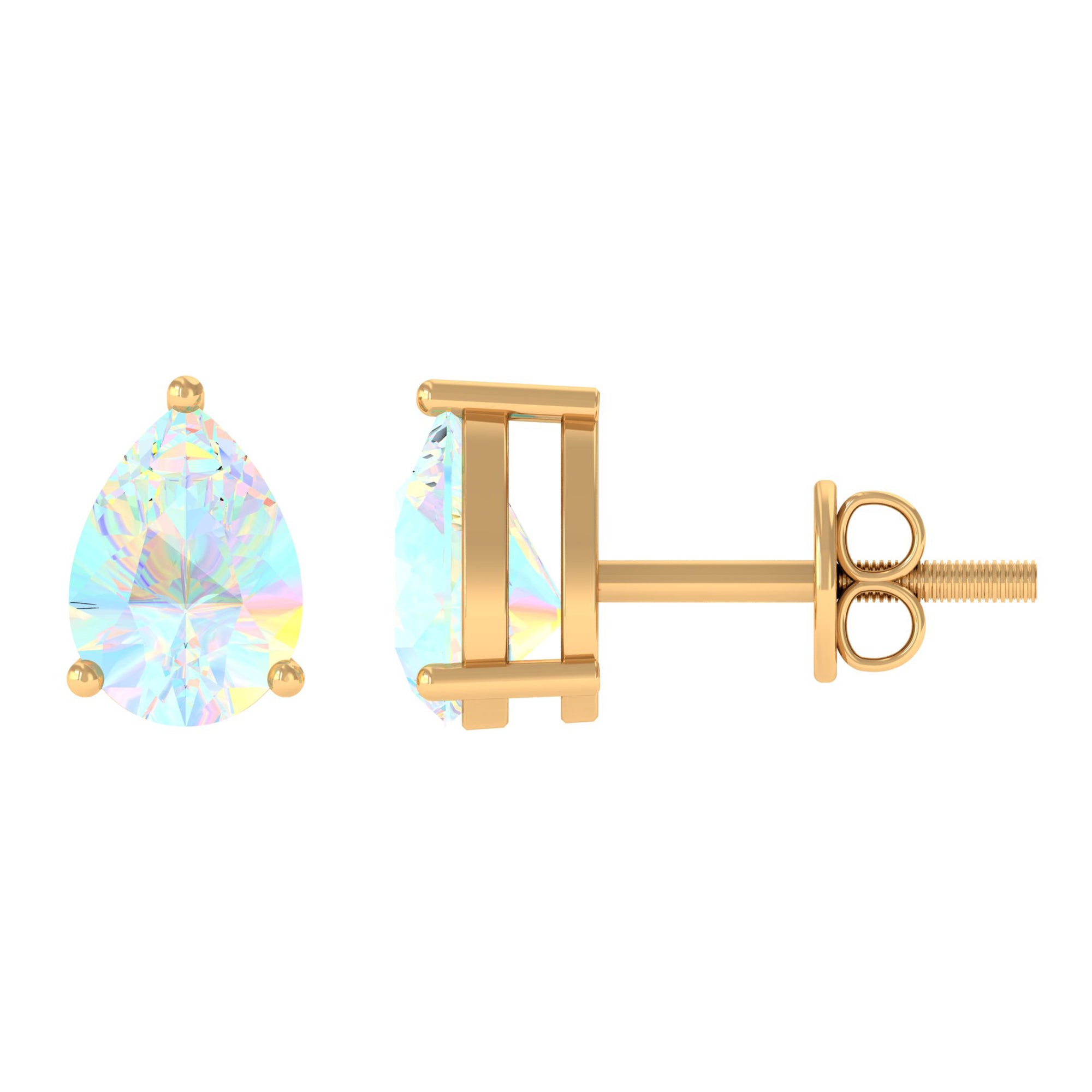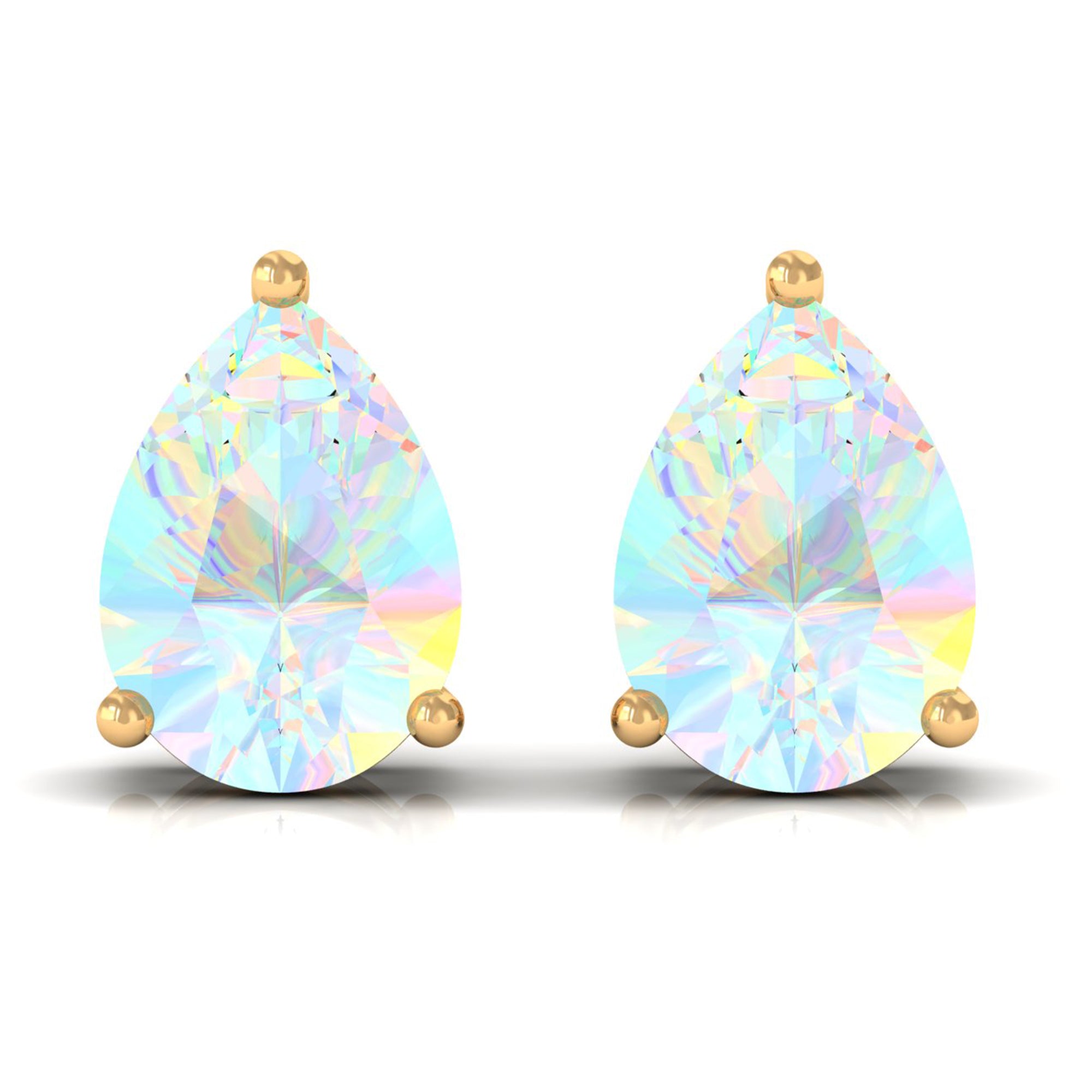 Pear Cut Ethiopian Opal Solitaire Stud Earrings in Gold
