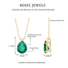 Pear Cut Lab Grown Emerald Solitaire Pendant Necklace With Chain