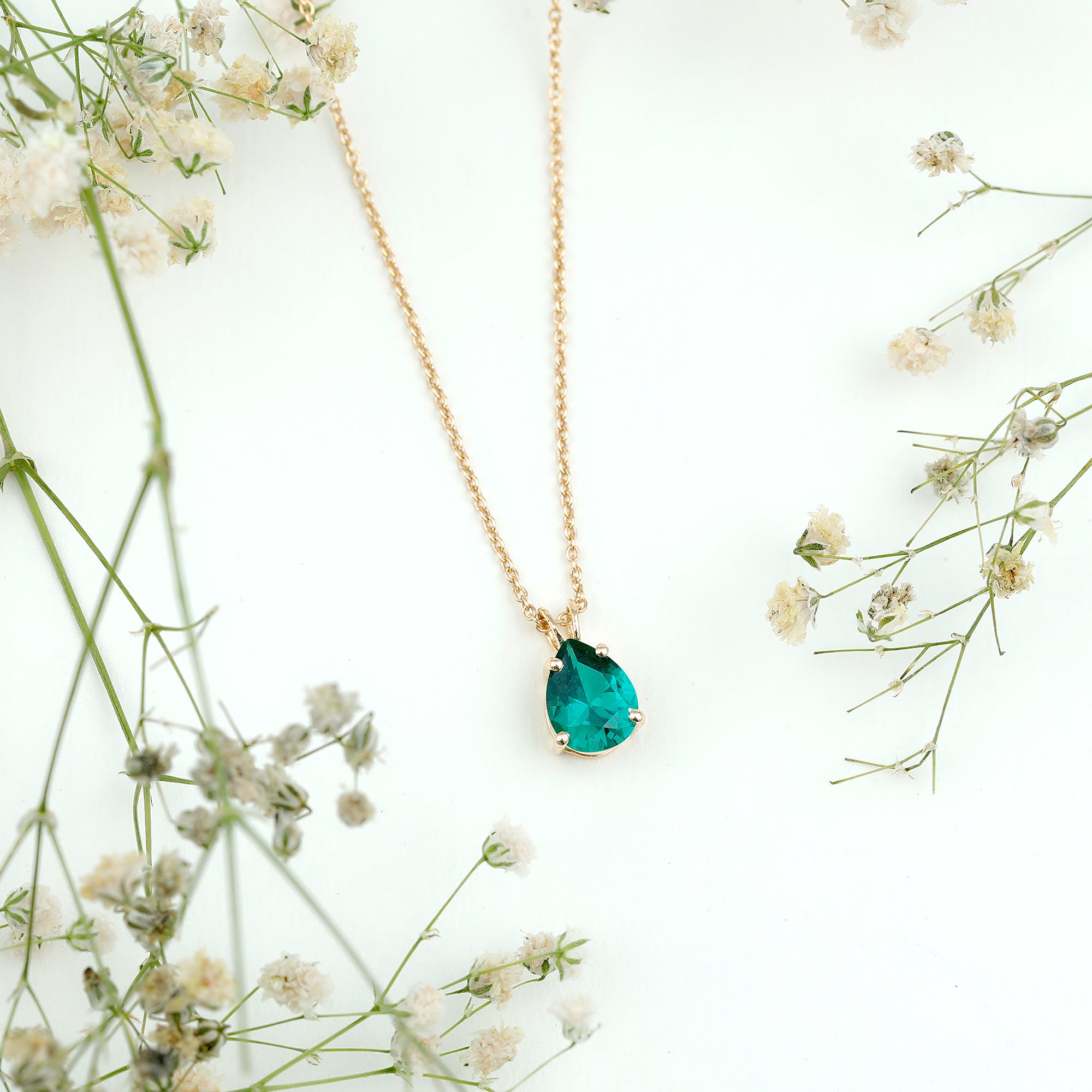 Lights seem to shine a little brighter when this Lab Grown Emerald Necklace rests against the skin, creating a glow that feels both gentle and unforgettable. At the center of this beautiful piece is a 7X9 MM pear shaped lab grown emerald, chosen for its rich color and AAAA quality. The pear shape adds an elegant drop that naturally draws the eye, while the secure prong setting keeps the stone steady and lets it sparkle with ease. The Teardrop Pendant hangs from a well-crafted chain that feels comfortable for all-day wear. Simple yet full of charm, this piece blends classic beauty with modern style, making it easy to pair with many different outfits. The Pear Shaped Necklace moves gently with each step, catching light from different angles and creating a soft sparkle. Its thoughtful design makes it a piece that can be worn again and again, treasured for years to come. Packed carefully in a lovely box, it is ready to be given as a gift or kept as a personal keepsake that marks a special memory.