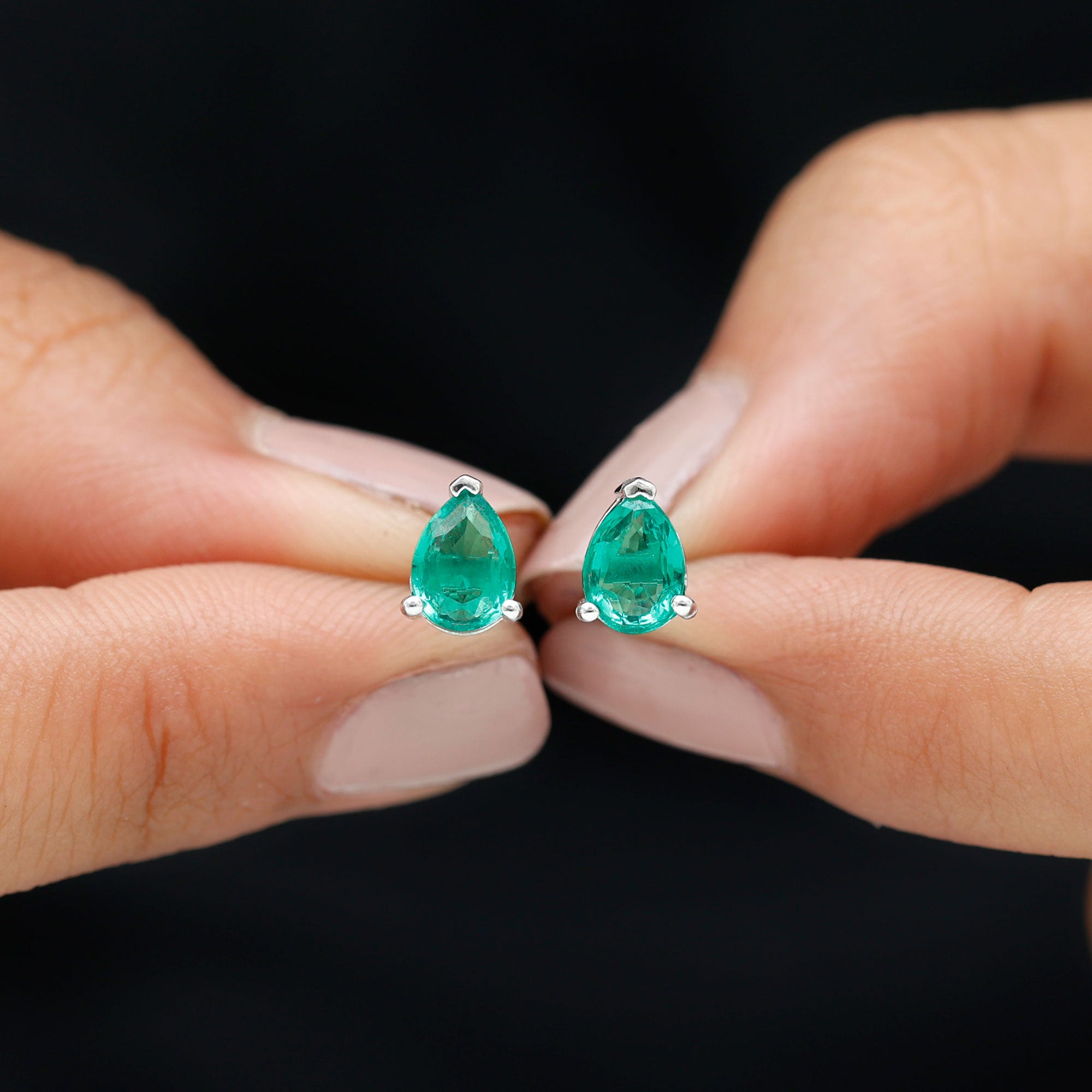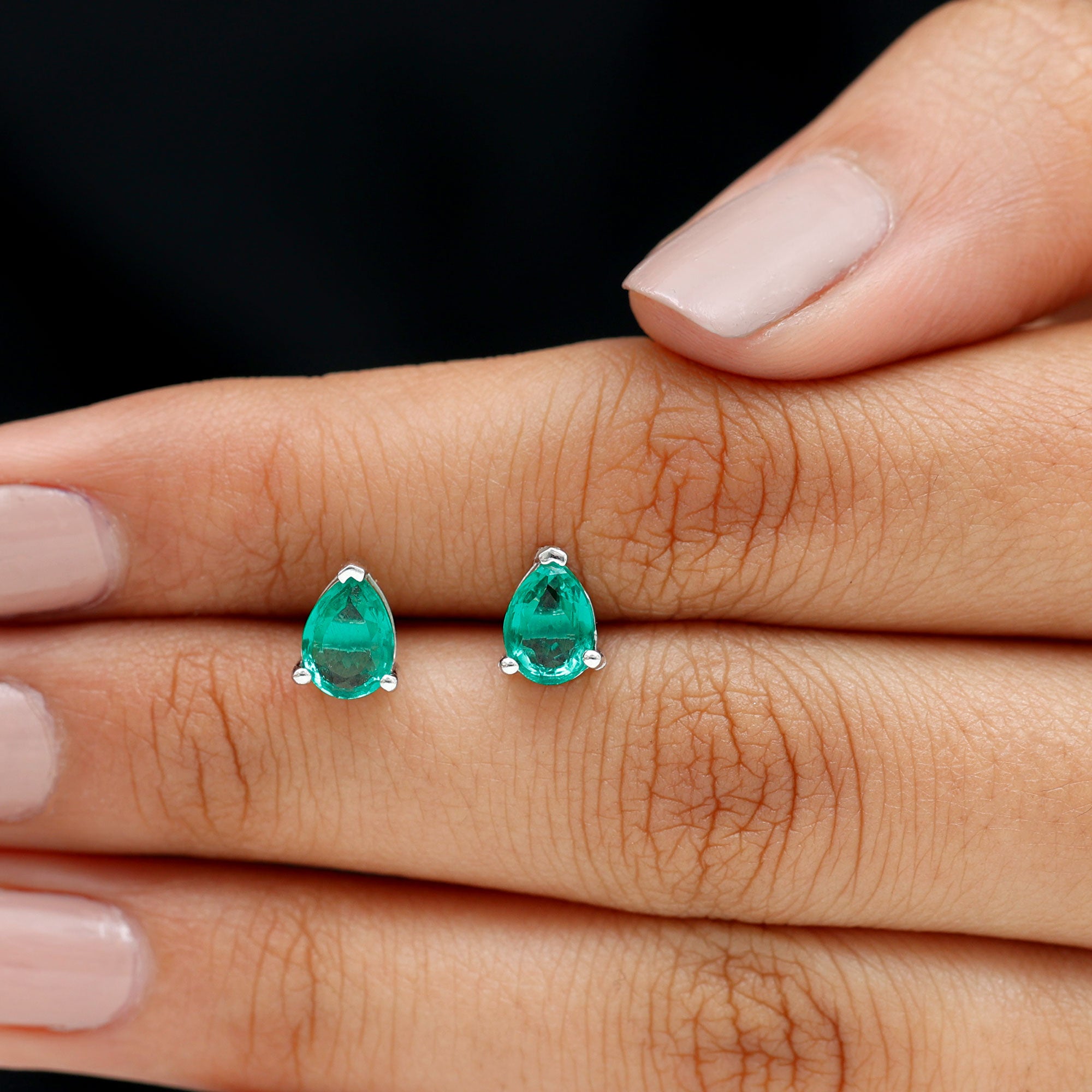 Pear Cut Lab Grown Emerald Solitaire Stud Earrings in 3 Prong Setting
