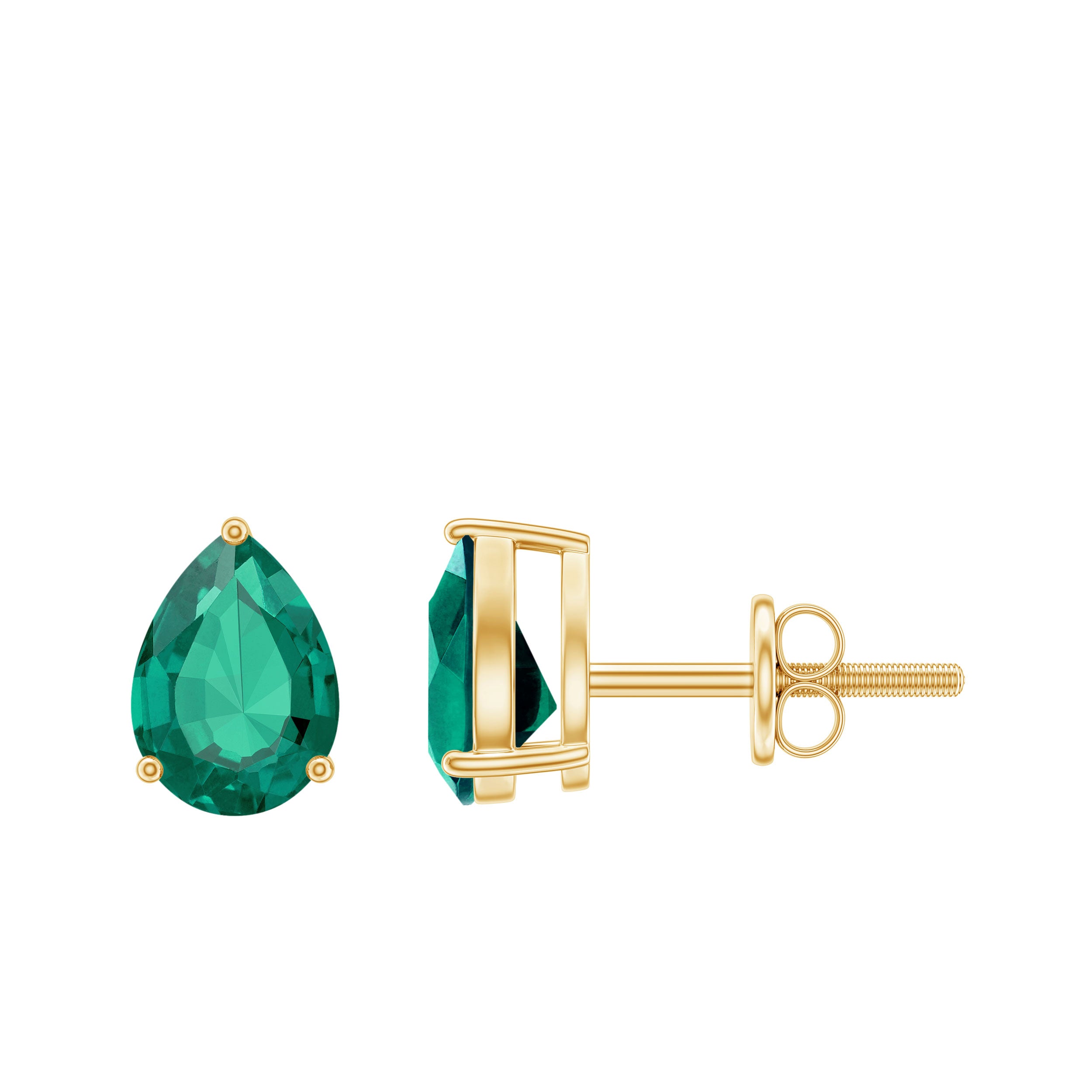 Pair these beautiful Pear Cut Created Emerald Solitaire Stud Earrings with your outfit to look even more graceful. These Stud Earrings are embellished with three Prong Setting.