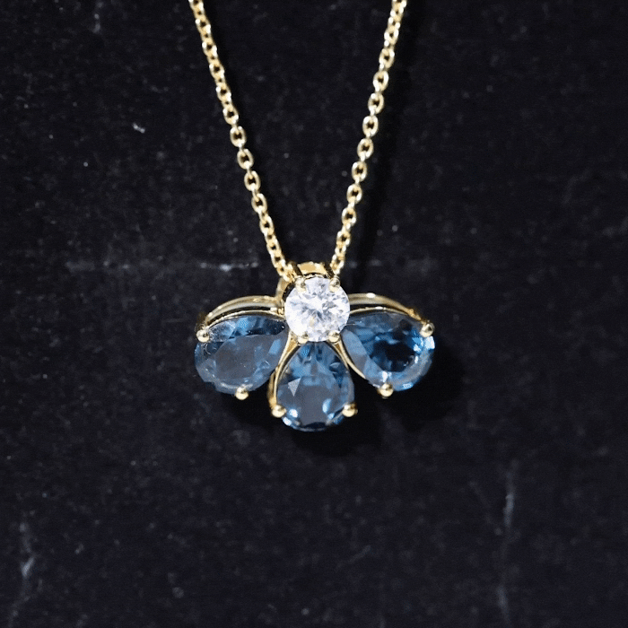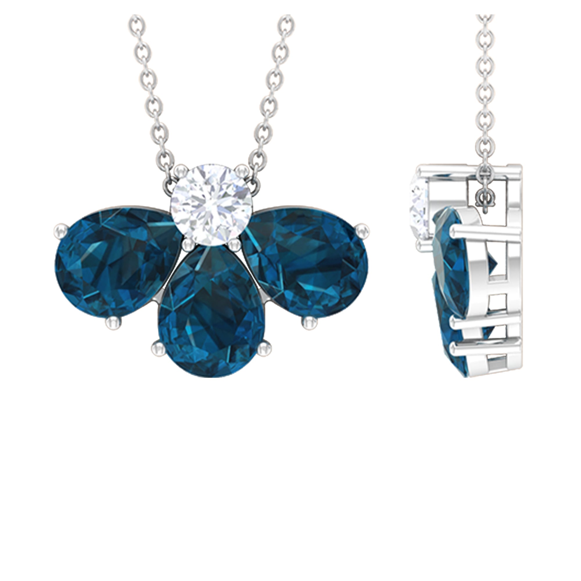 Pear Cut London Blue Topaz and Moissanite Flower Pendant