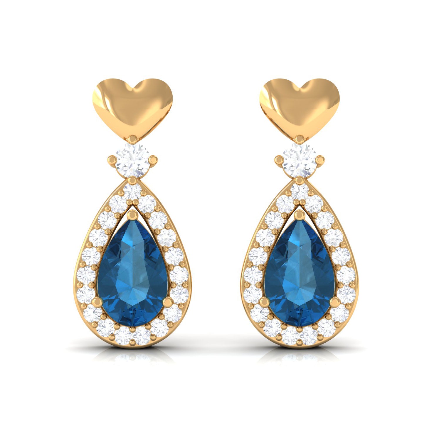 Pear Cut London Blue Topaz Bridal Drop Earrings with Diamond Halo