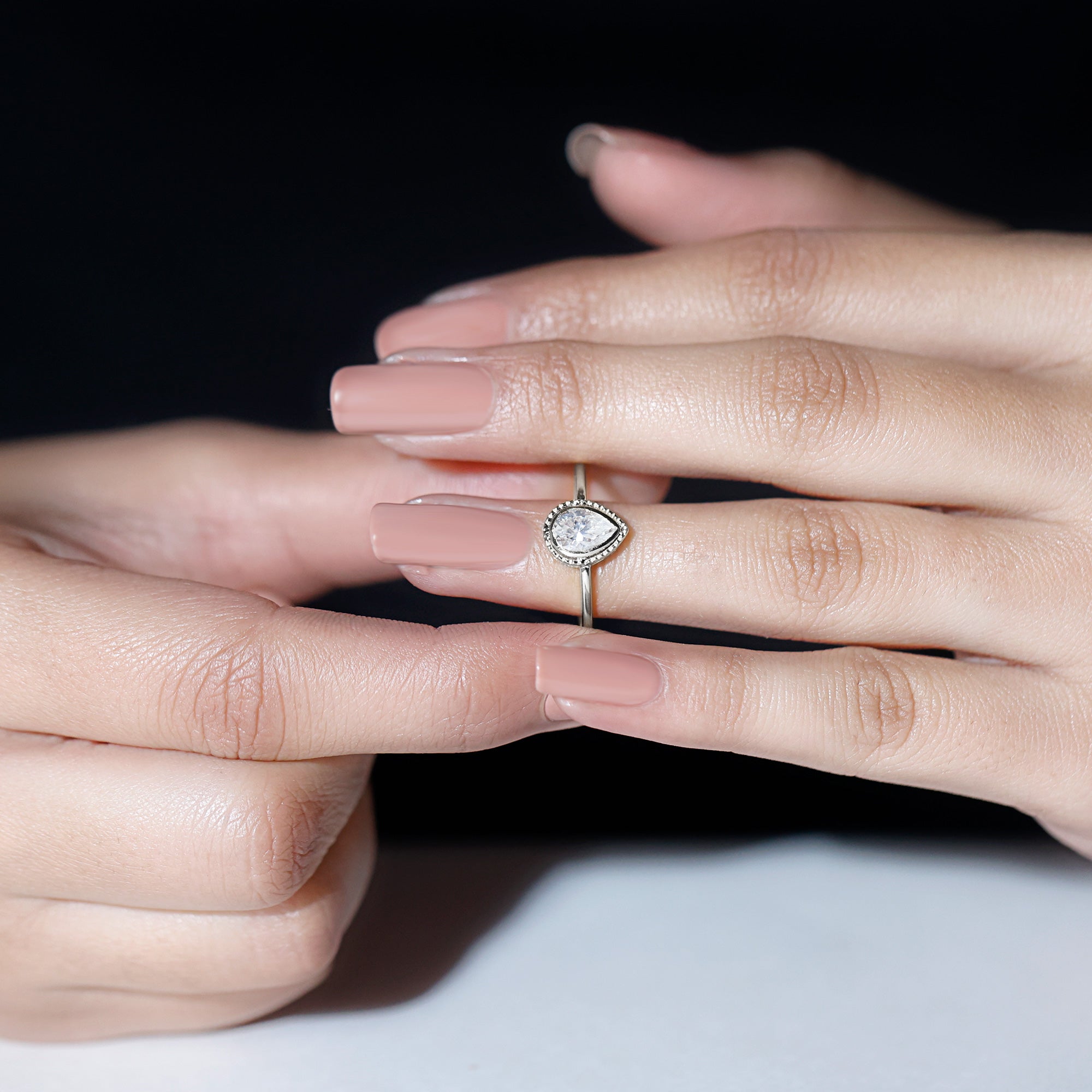 This beautiful Moissanite Engagement Ring blends modern design with timeless elegance, making it a perfect symbol of love and commitment. Crafted from high quality metal, the Solitaire Ring features a sparkling 5X7 MM pear shaped moissanite set securely in bezel setting and framed by subtle engraved detailing, adding a touch of vintage charm to its modern look. At the center, the D-VS1 Quality moissanite shines brightly, known for its brilliance and clarity, offering an ethical and affordable alternative to traditional diamonds. The teardrop shape gives the ring a soft, romantic feel, perfectly representing the promise of forever and the strength of your bond. Designed to celebrate love in its purest form, this Pear Shaped Moissanite Ring stands out with its simple yet captivating appeal. Whether you are marking a meaningful milestone, planning a thoughtful gift, or celebrating an anniversary or Valentine’s Day, this Bezel Engagement Ring is a graceful choice. Its elegant design is suitable for daily wear while still being special enough for significant moments.
