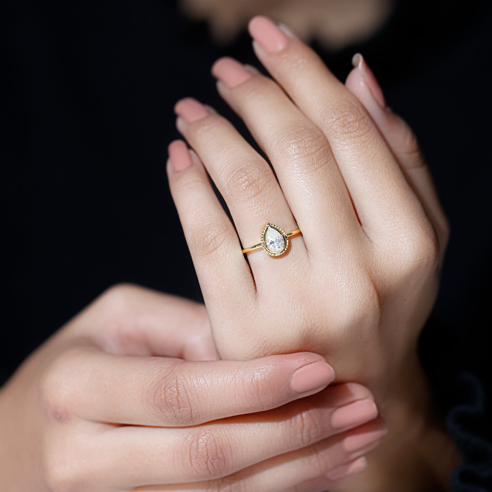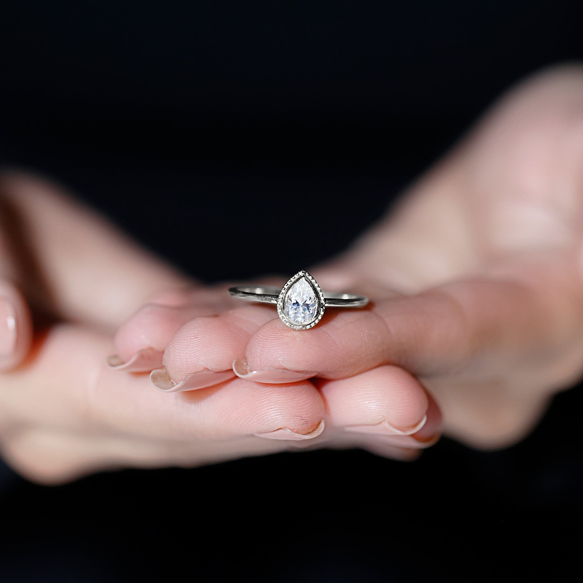 Pear Shaped Moissanite Solitaire Engagement Ring in Bezel Setting