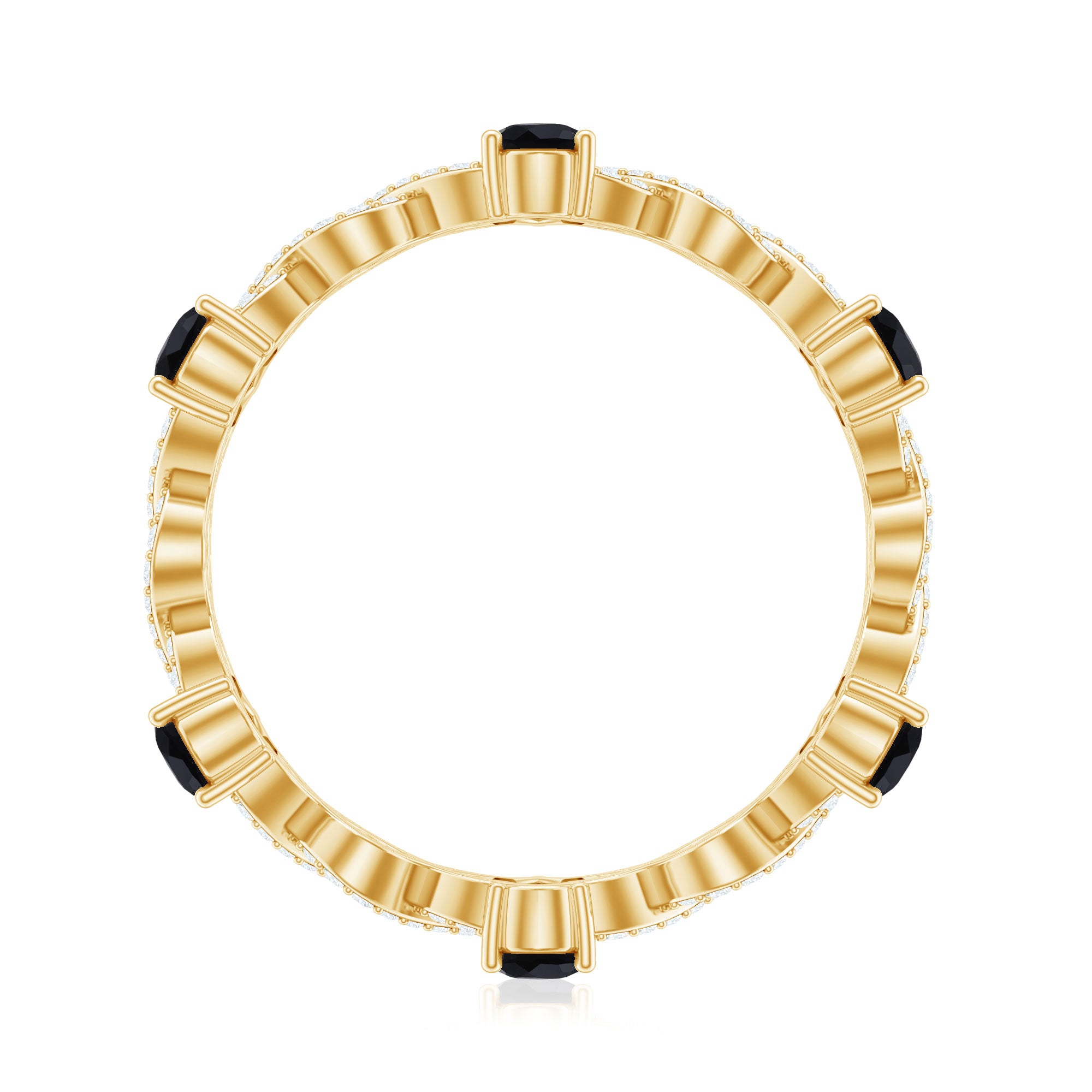 Profess your love with this Crossover Eternity Ring is embellished with pear cut black spinel and Round Shape Diamond.