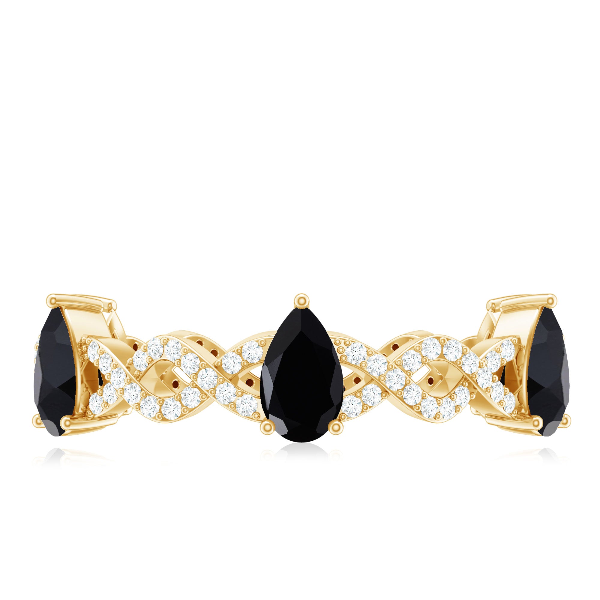 Pear Cut Natural Black Spinel Crossover Eternity Ring with Diamond