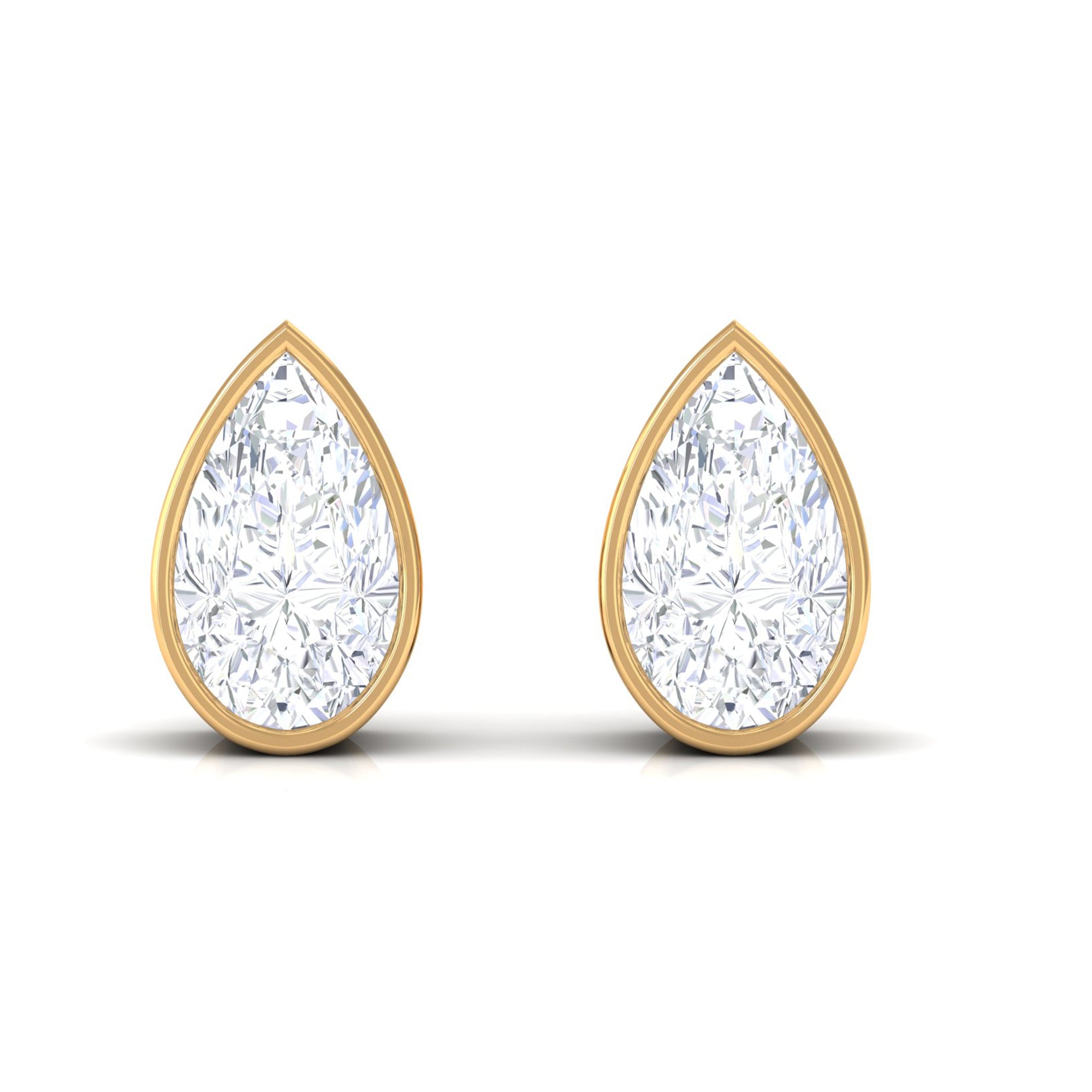 These beautiful stud earrings feature pear-cut natural diamonds, elegantly set in a bezel setting. The diamonds are of the highest quality, ensuring maximum sparkle and brilliance. The unique pear cut shape adds a touch of sophistication to the design while the bezel setting ensures that the gemstones are securely held in place. The simplicity of the design makes these earrings perfect for both casual and formal occasions, and they are sure to become a staple in any jewelry collection. These diamond solitaire earrings are an elegant and timeless choice that will never go out of style.