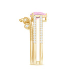 Pear Cut Natural Rose Quartz and Moissanite Wedding Ring Set