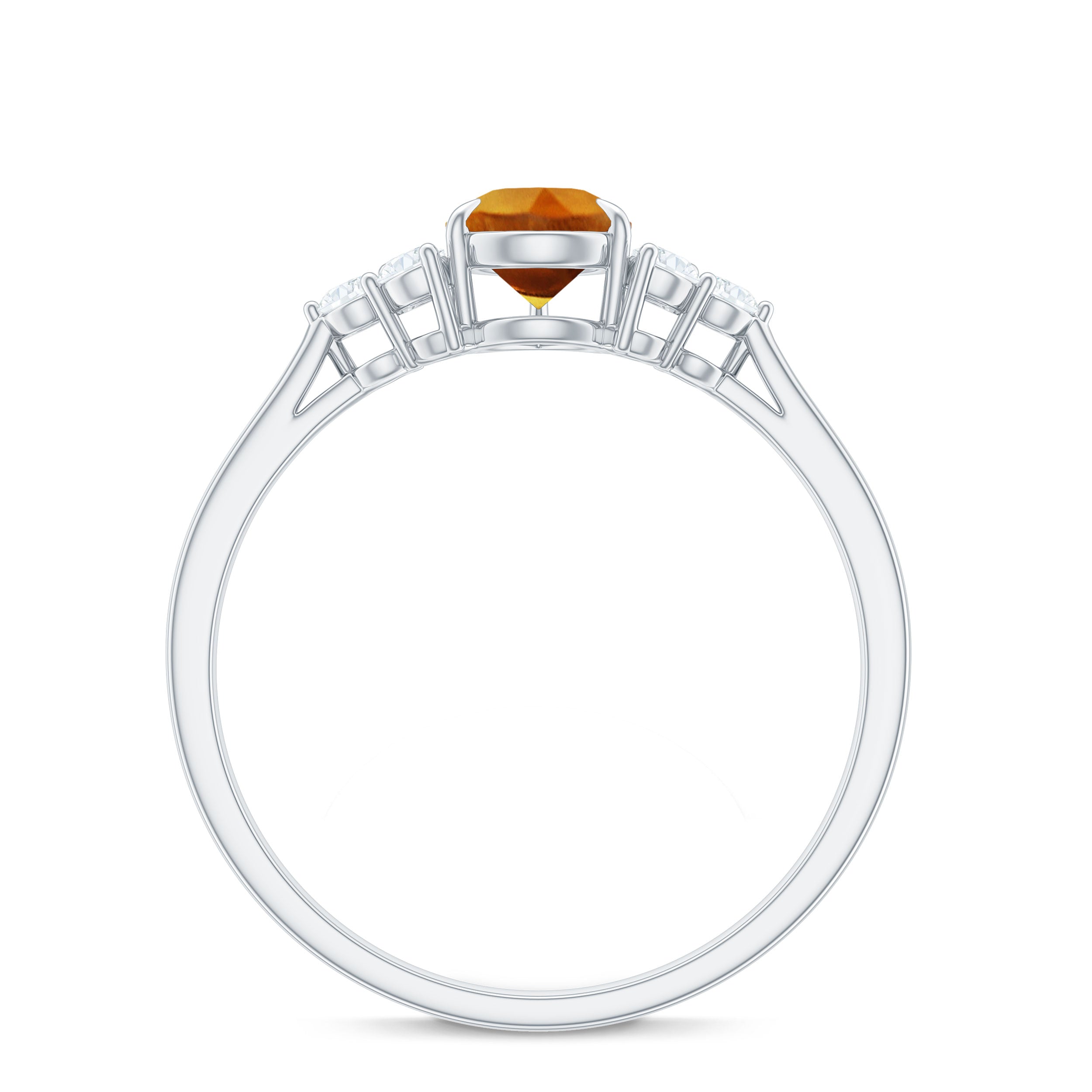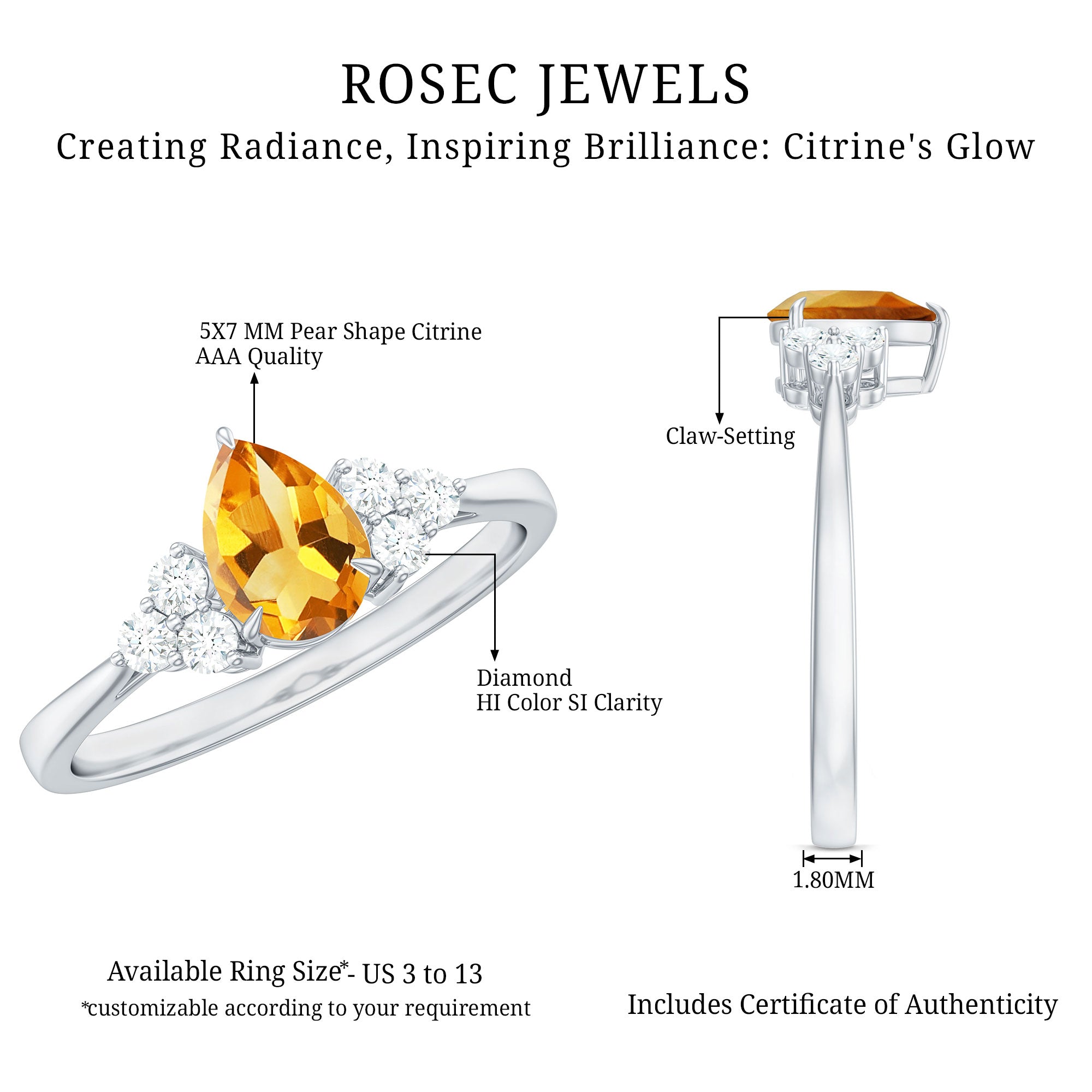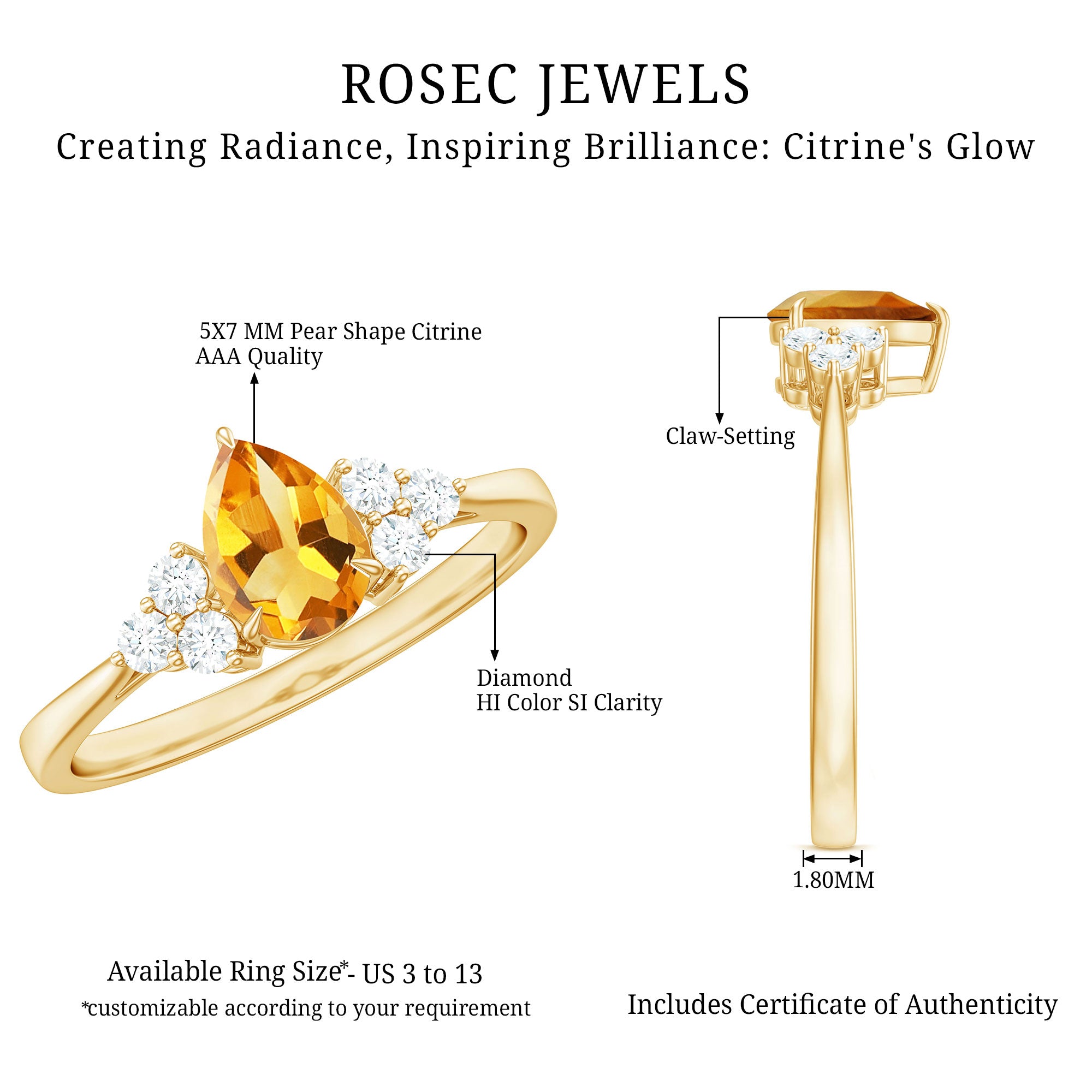 Pear Cut Real Citrine Solitaire Ring with Diamond Trio