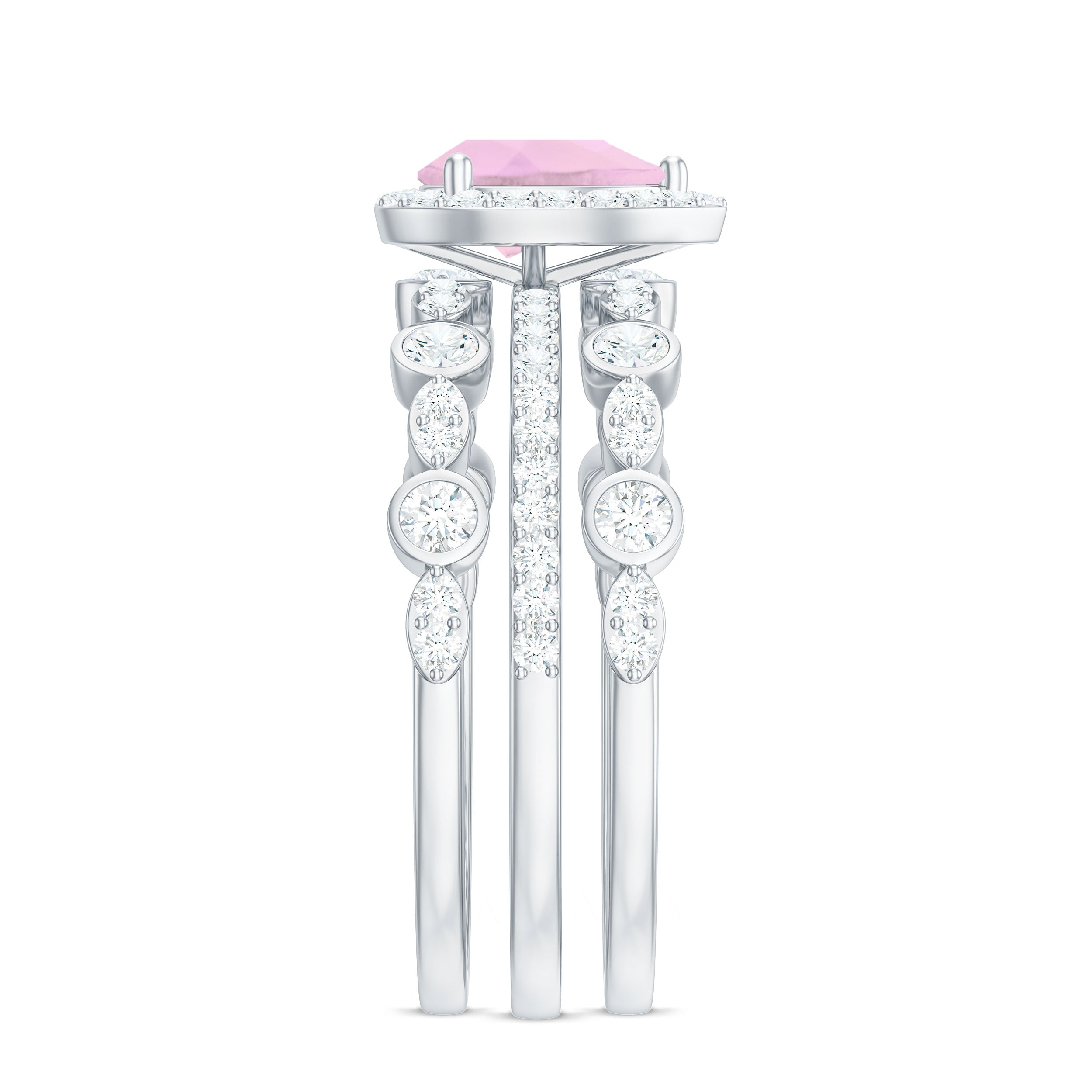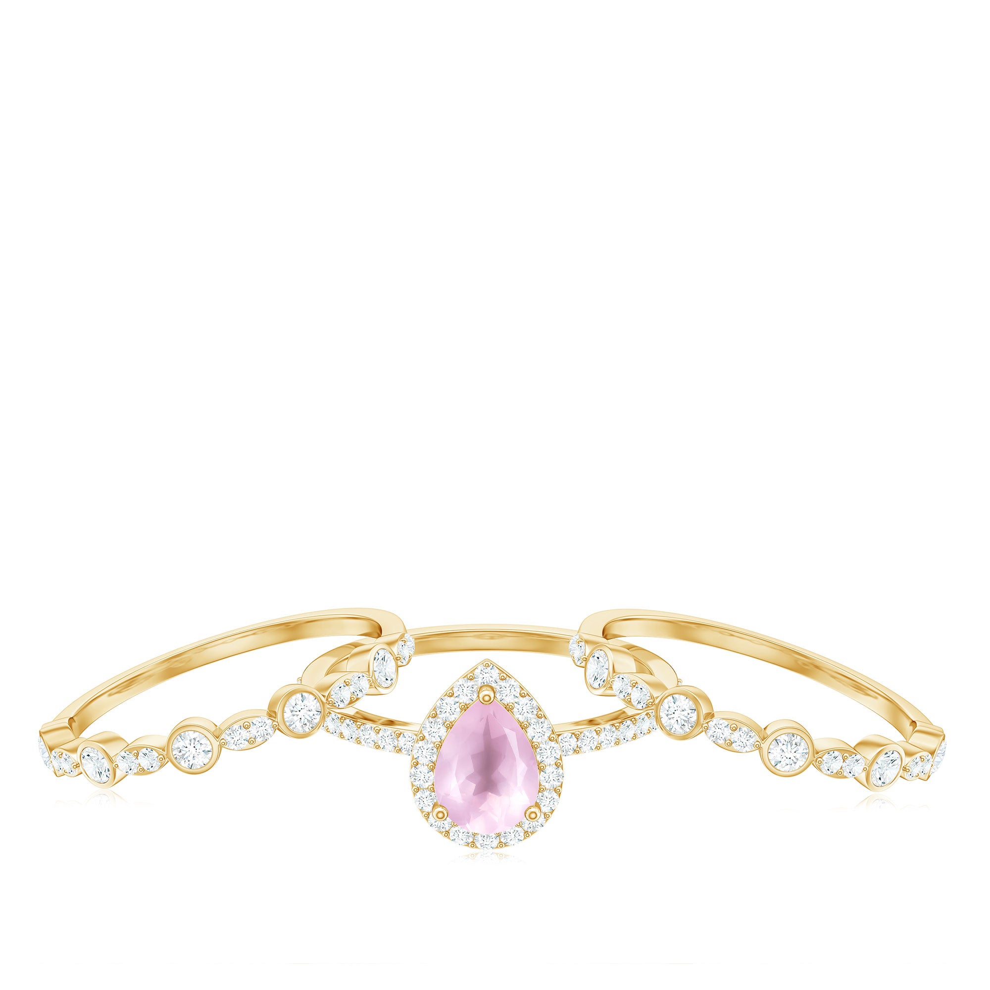 Pear Cut Rose Quartz Bridal Trio Ring Set with Moissanite Band