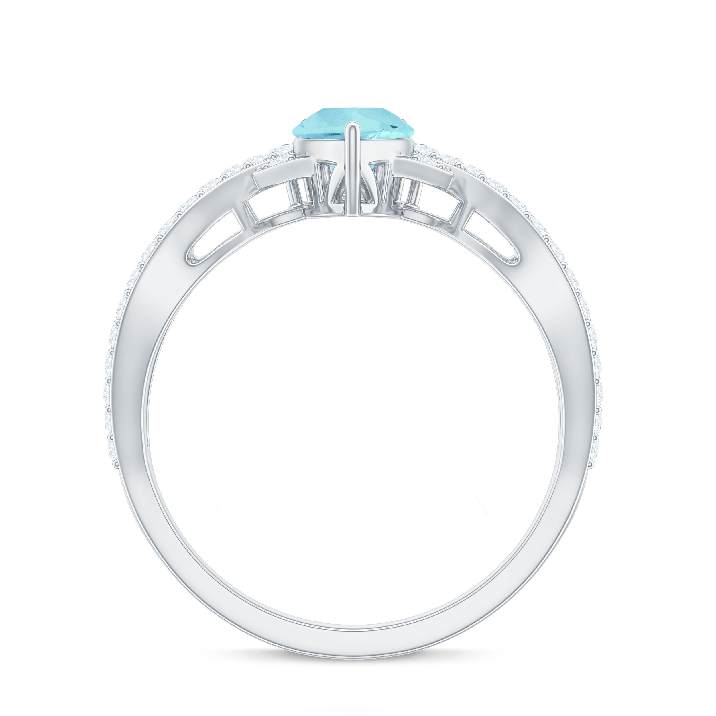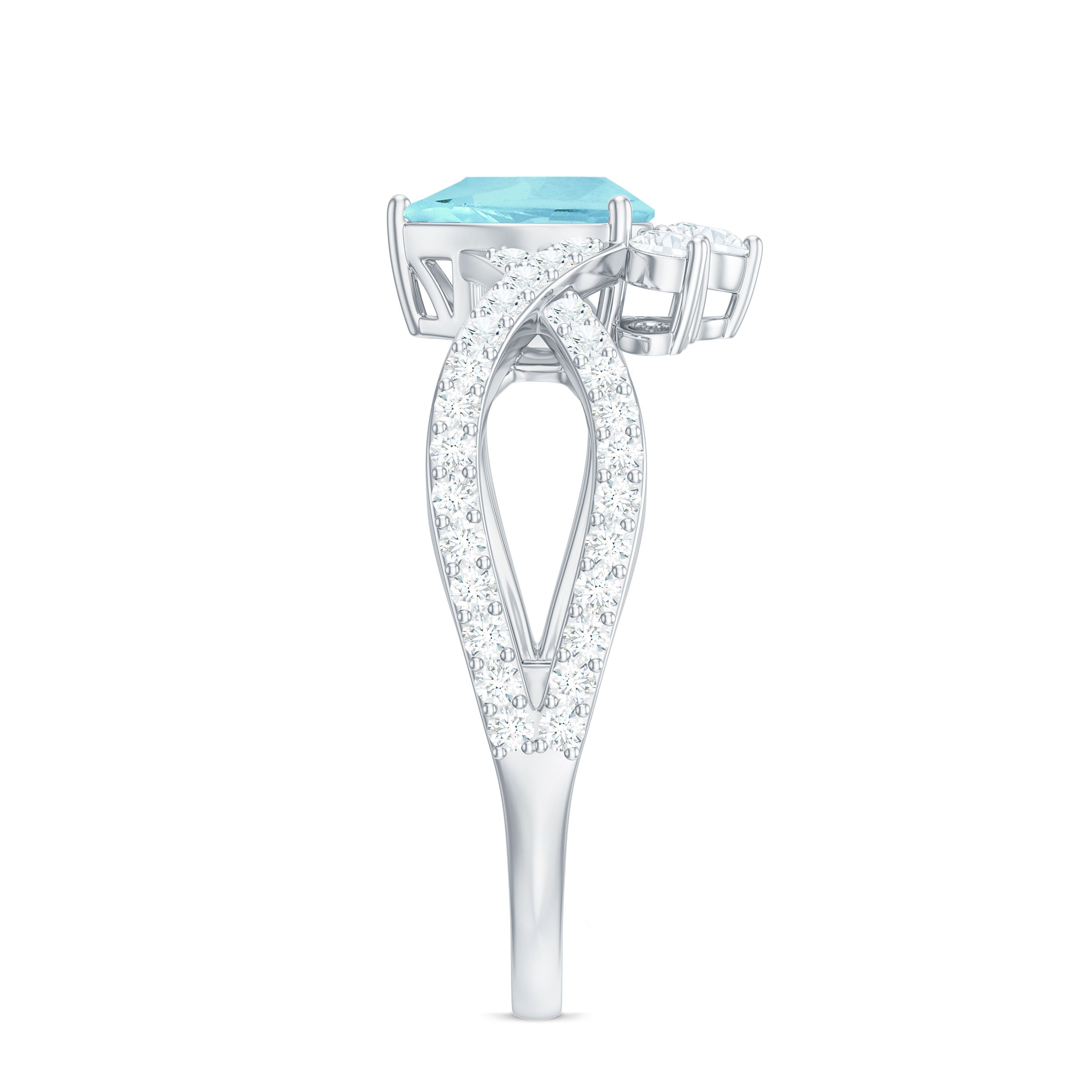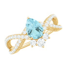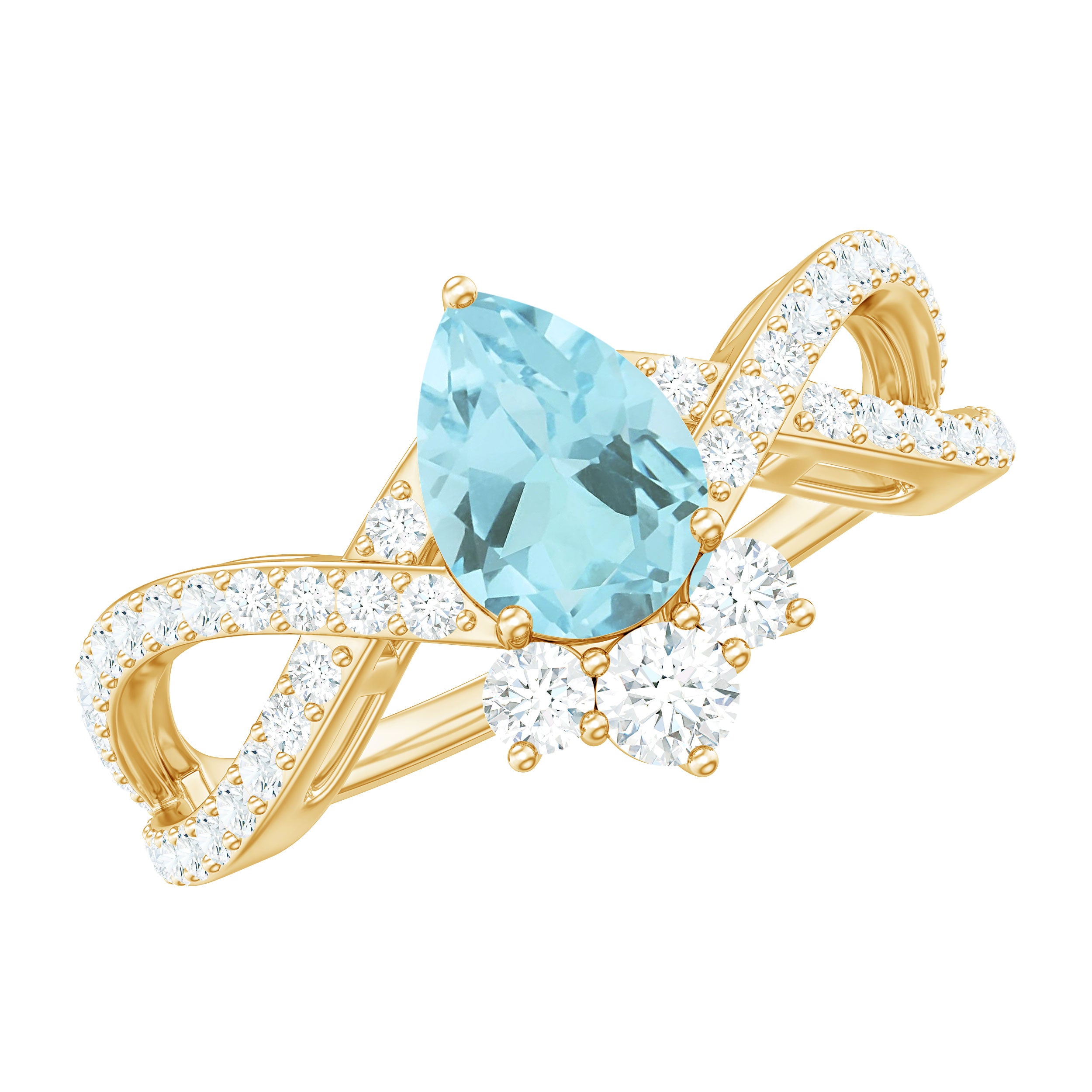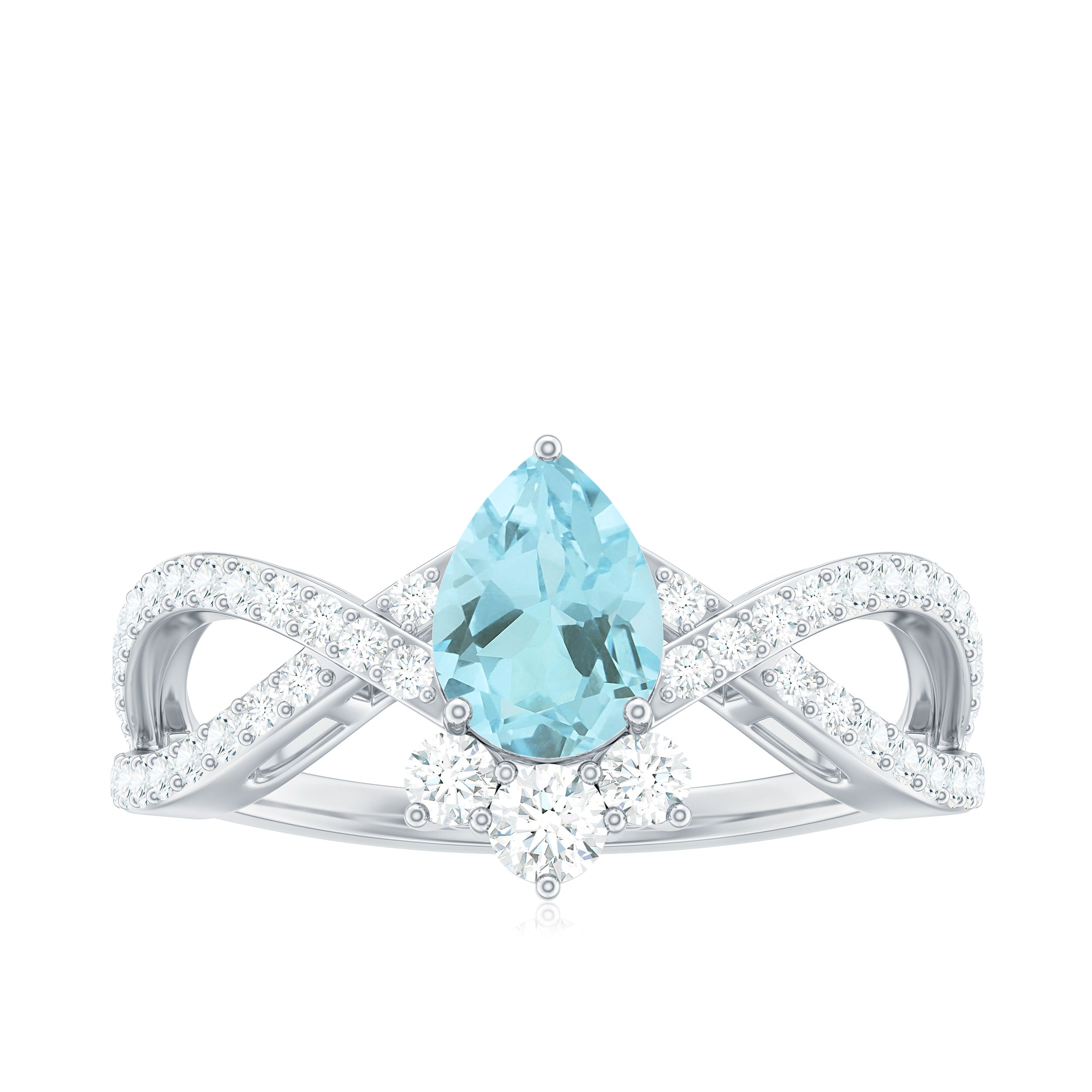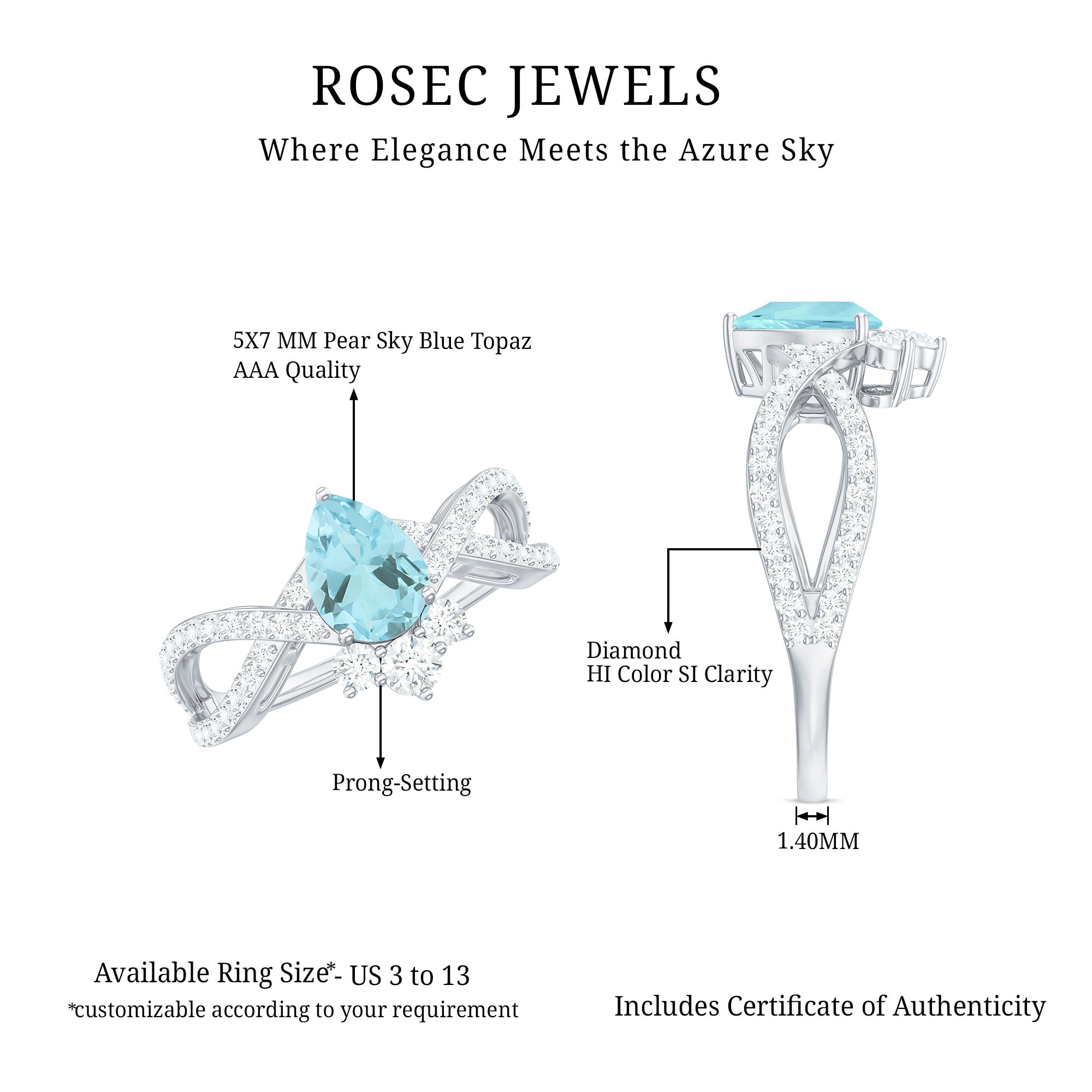 Pear Cut Sky Blue Topaz Designer Crossover Engagement Ring with Diamond